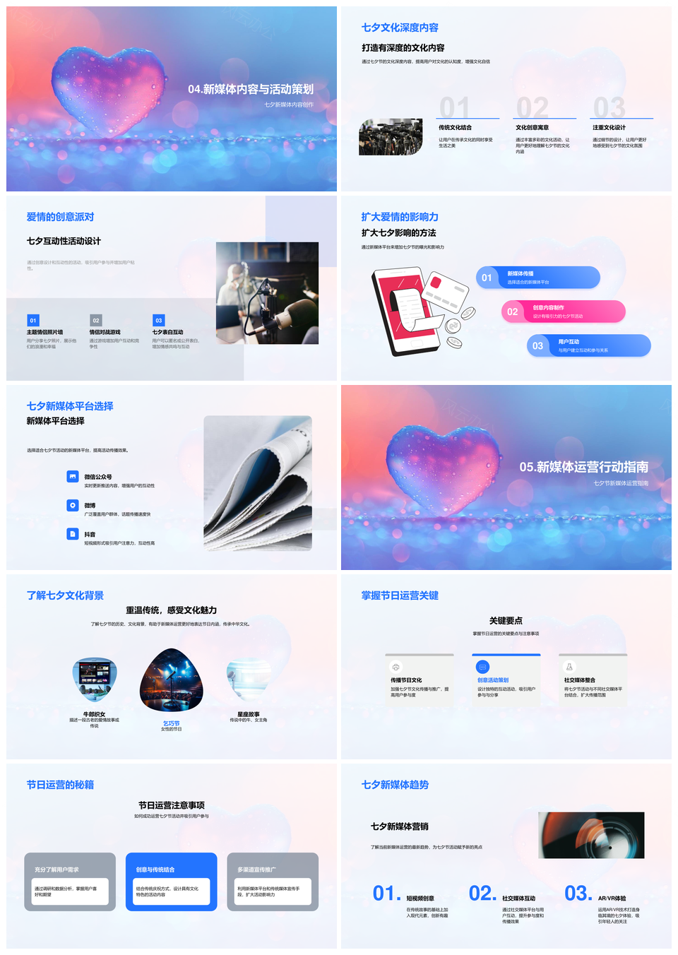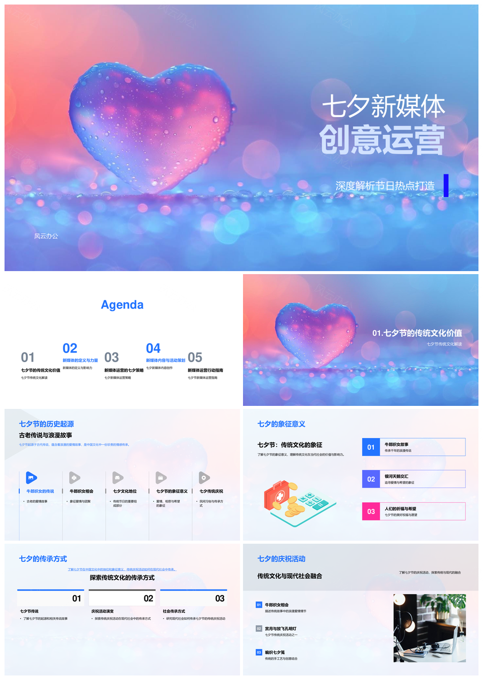 风云办公提供的七夕新媒体创意运营节日热点历史起源PPT模板,下载格式为pptx,一共28页,作品中文字及图均可以修改和编辑,图片更改请在作品中右键图片并更换,文字修改请直接点击文字进行修改。