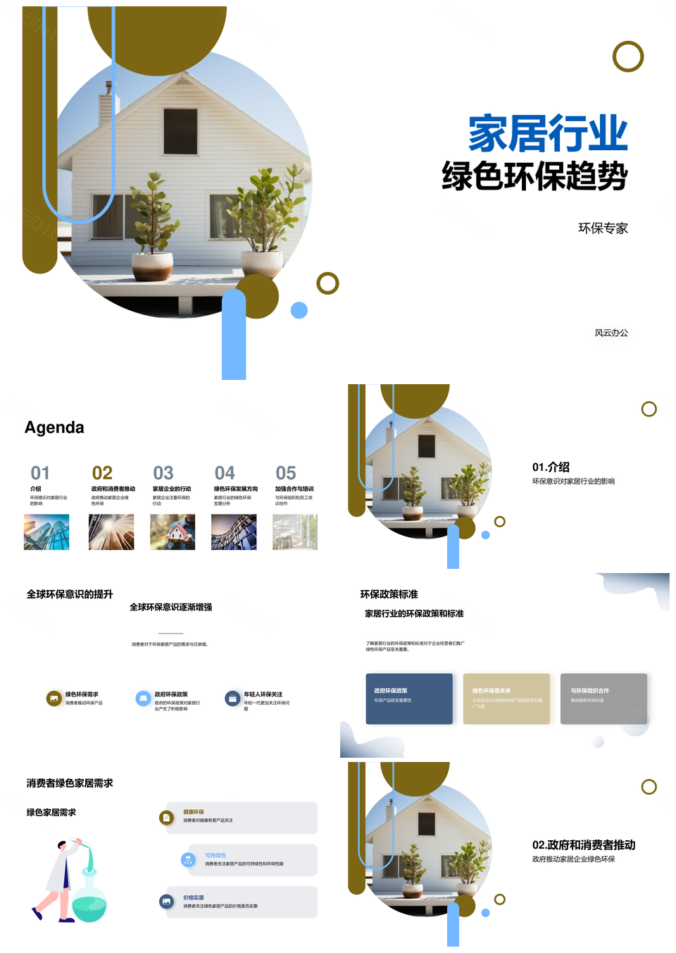 风云办公提供的家居行业绿色环保政策驱动需求增长PPT模板,下载格式为pptx,一共22页,作品中文字及图均可以修改和编辑,图片更改请在作品中右键图片并更换,文字修改请直接点击文字进行修改。