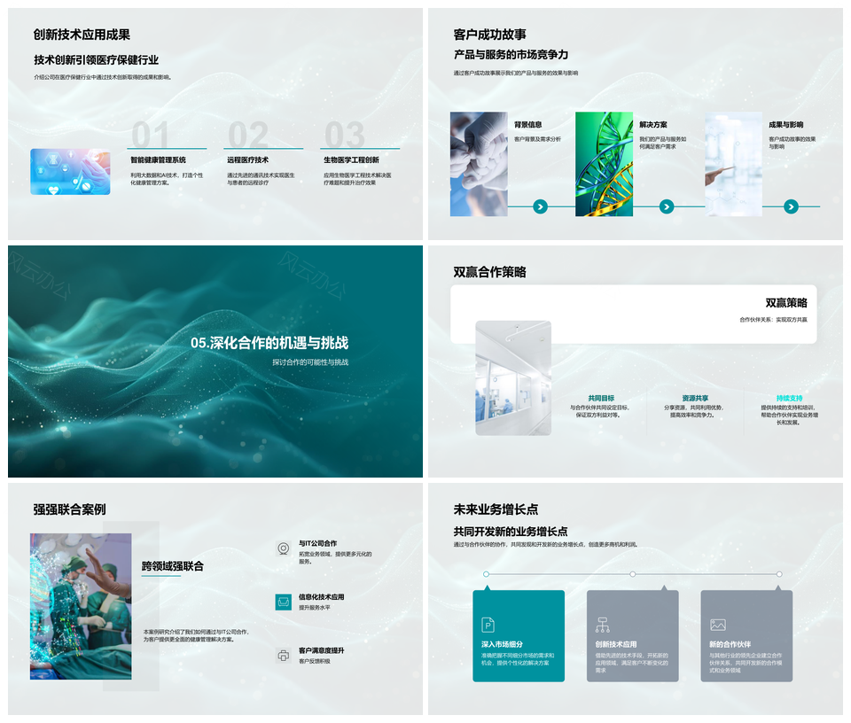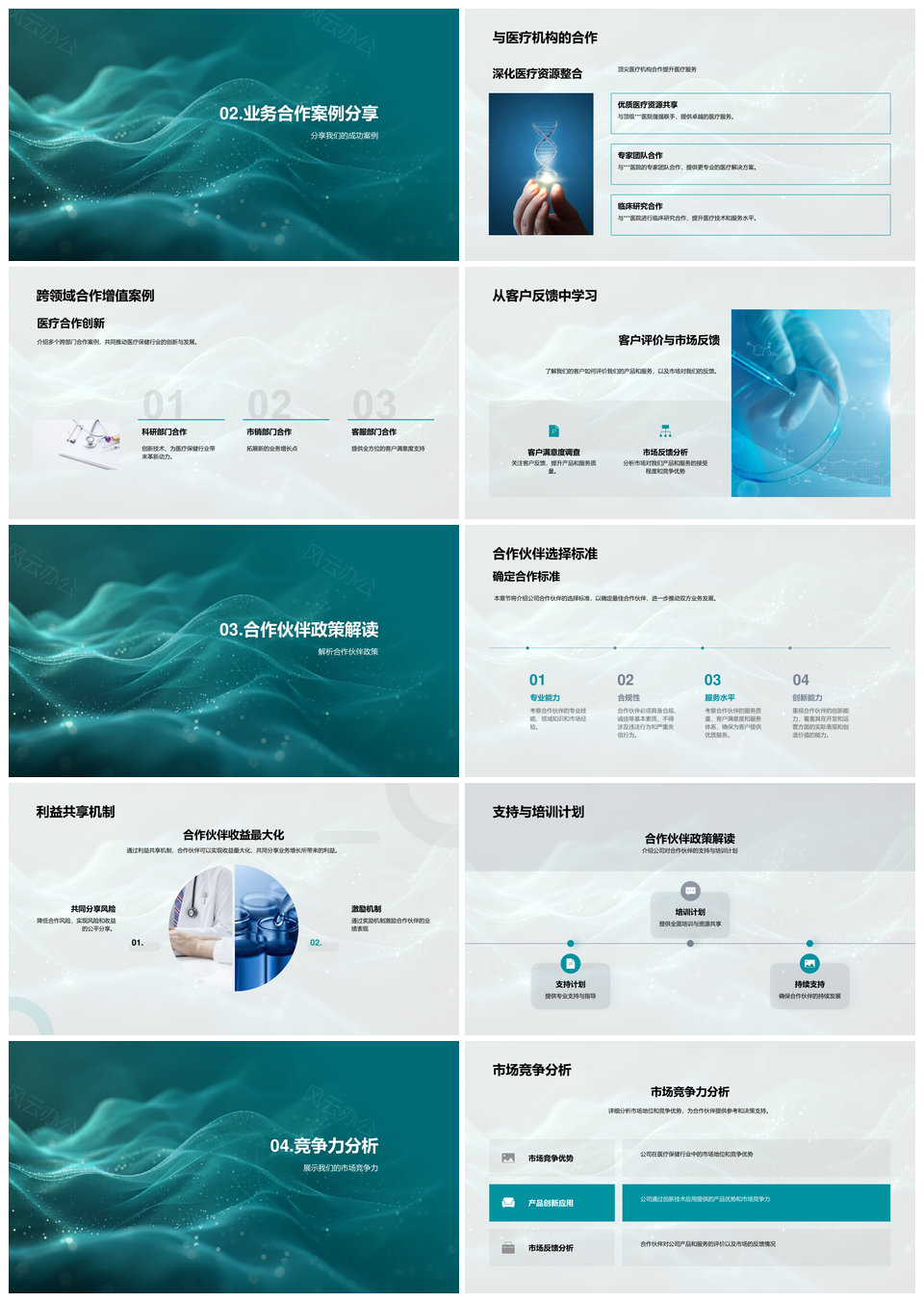 这是一张医疗保健合作策略产品服务案例全维支持伙伴选择利益共享优势PPT模板,包含医疗保健、合作策略、产品服务、案例、全维支持、伙伴选择、利益共享、优势等主题内容,也可用作医疗保健合作策略产品服务、合作策略产品服务案例、产品服务案例全维支持、案例全维支持伙伴选择、全维支持伙伴选择利益共享、伙伴选择利益共享优势、医疗保健合作策略案例全维、合作策略产品服务全维支持、产品服务案例伙伴选择、全维支持利益共享优势、医疗保健合作策略伙伴选择、产品服务全维支持利益、案例全维支持优势、医疗保健合作策略利益共享、产品服务案例利益共享优势等PPT场景使用。 风云办公提供的医疗保健合作策略产品服务案例全维支持伙伴选择利益共享优势PPT模板,下载格式为pptx,一共24页,作品中文字及图均可以修改和编辑,图片更改请在作品中右键图片并更换,文字修改请直接点击文字进行修改。