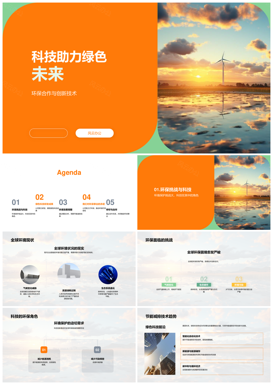 风云办公提供的科技创新驱动绿色环保节能减排未来PPT模板,下载格式为pptx,一共24页,作品中文字及图均可以修改和编辑,图片更改请在作品中右键图片并更换,文字修改请直接点击文字进行修改。
