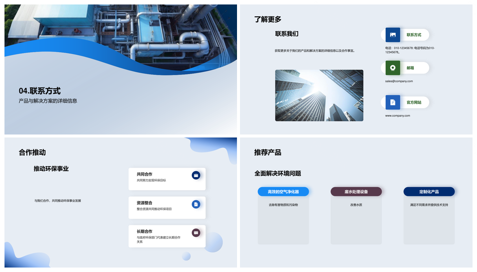 这是一张企业科技环保产品解决方案引领绿色行动PPT模板,包含企业、科技、环保产品、解决方案、引领、绿色行动等主题内容,也可用作科技环保产品解决方案、解决方案引领绿色行动、企业科技环保产品、环保产品解决方案引领、科技环保产品解决方案、环保产品解决方案、科技环保产品、企业科技环保、产品解决方案引领、解决方案引领绿色、引领绿色行动、环保产品、产品解决方案、解决方案引领、绿色行动等PPT场景使用。 风云办公提供的企业科技环保产品解决方案引领绿色行动PPT模板,下载格式为pptx,一共22页,作品中文字及图均可以修改和编辑,图片更改请在作品中右键图片并更换,文字修改请直接点击文字进行修改。