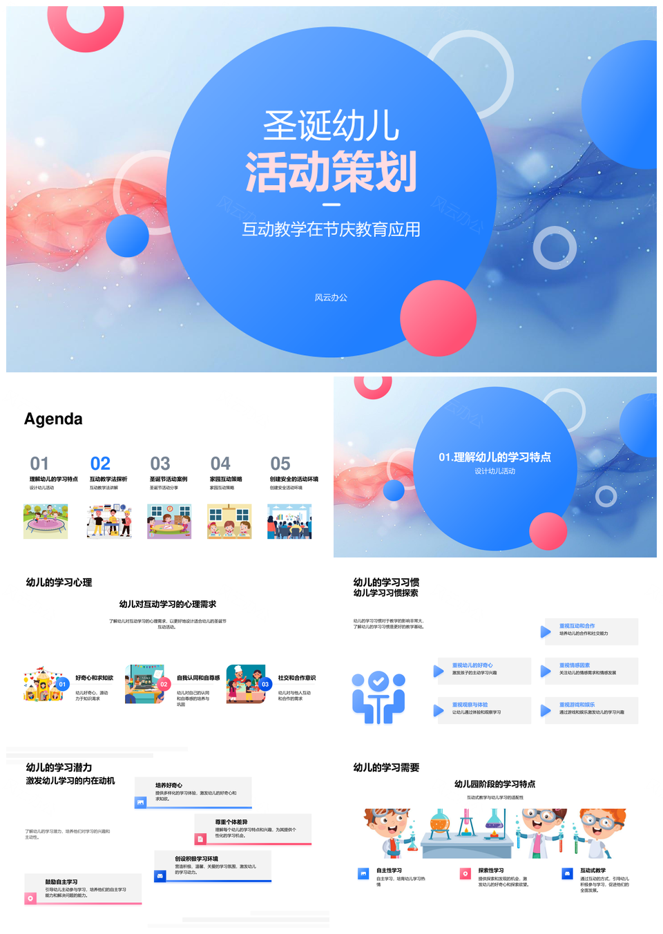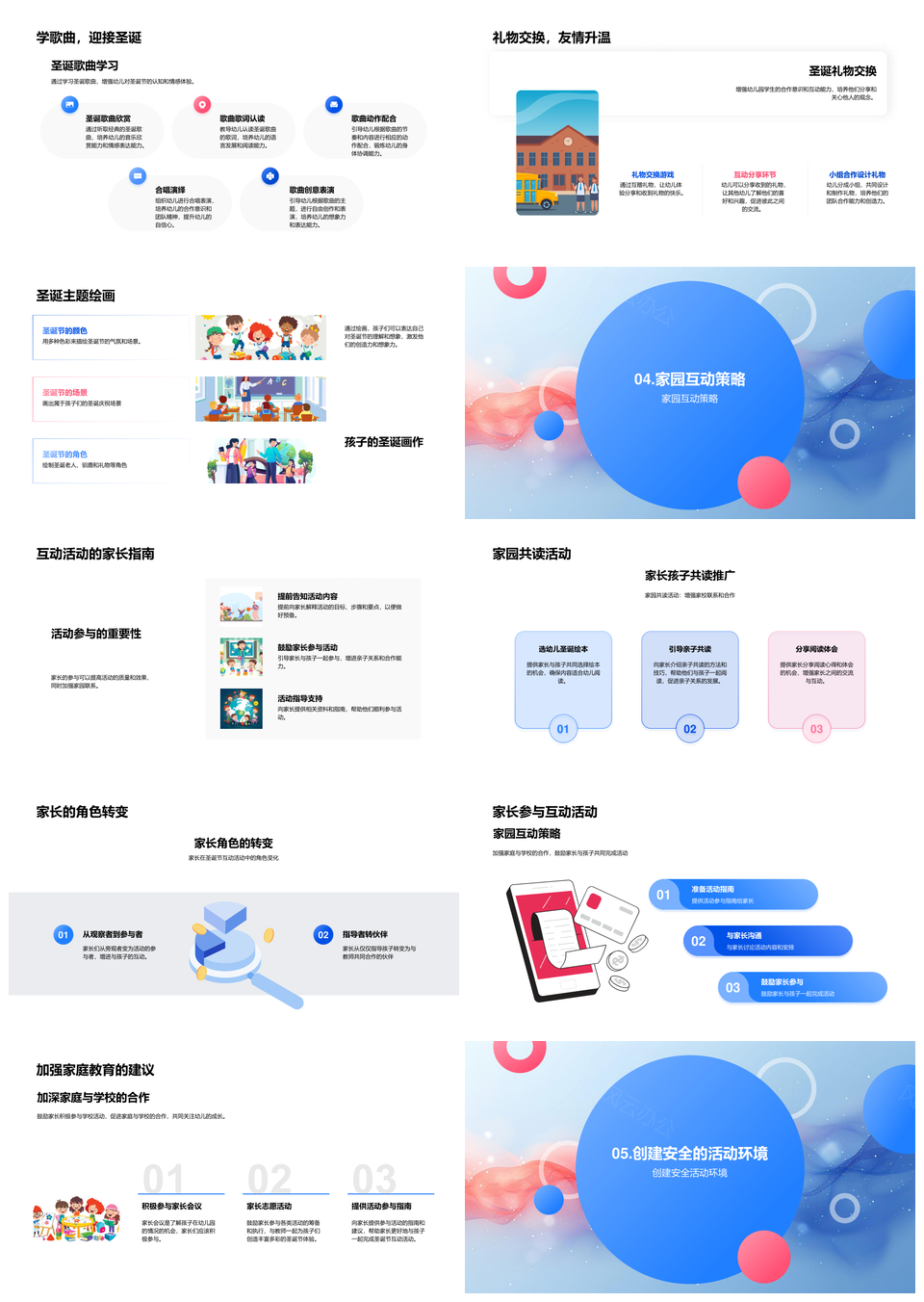 圣诞幼儿亲子互动教学安全装饰活动策划PPT模板推荐