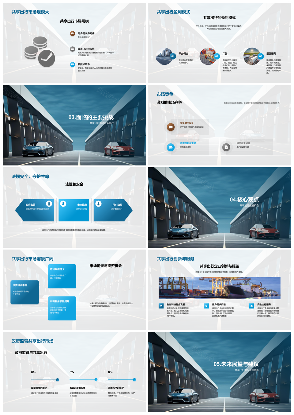 共享经济下汽车出行多样化需求机遇挑战PPT模板推荐