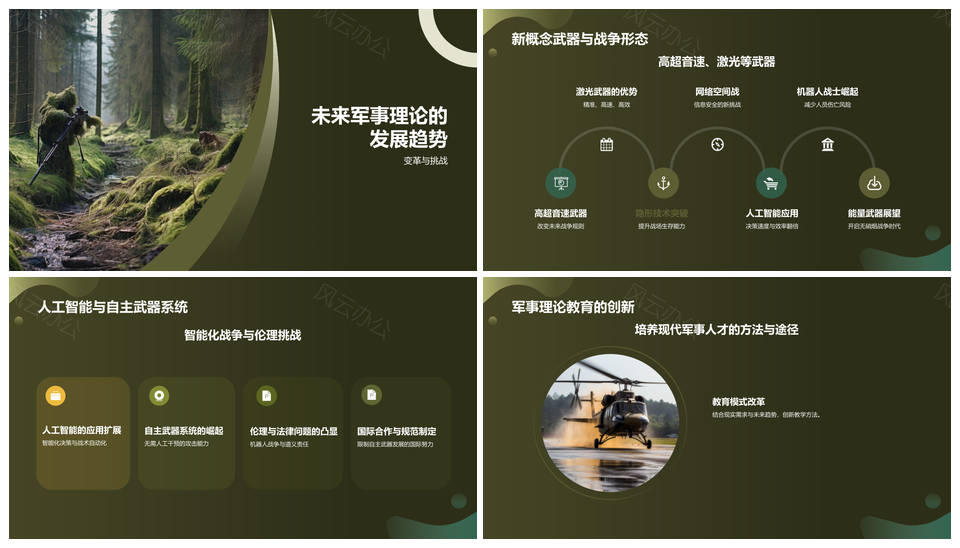 自然风景伪装军事地形保护战术瞄准武器PPT模板