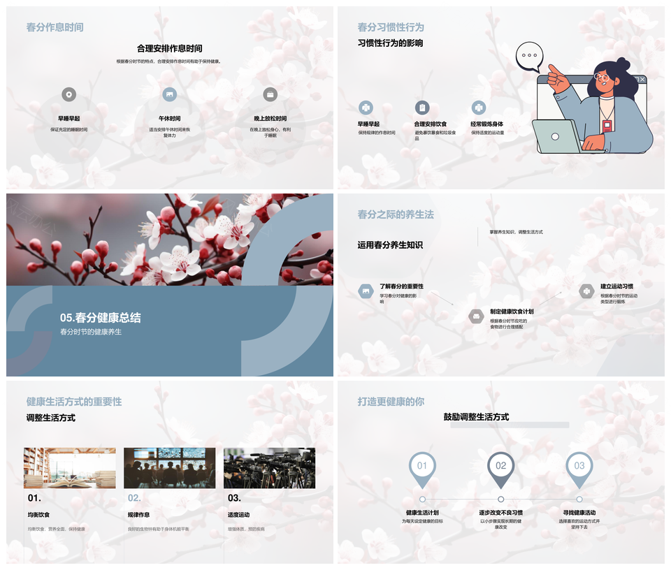 这是一张春分养生调适饮食运动作息营养均衡PPT模板,包含春分、养生、调适、饮食、运动、作息、营养、均衡等主题内容,也可用作春分养生调适饮食、养生调适饮食运动、调适饮食运动作息、饮食运动作息营养、运动作息营养均衡、春分养生调适、养生调适饮食、调适饮食运动、饮食运动作息、运动作息营养、作息营养均衡、春分养生、养生调适、调适饮食、饮食运动等PPT场景使用。