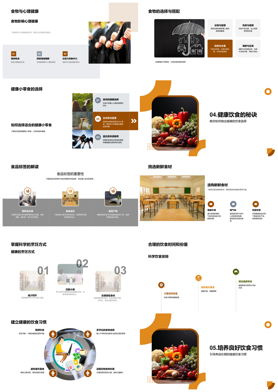 这是一张饮食健康营养教育健康零食与果蔬选择PPT模板,包含饮食、健康、营养教育、健康零食、果蔬选择等主题内容,也可用作饮食健康营养教育、健康营养教育健康零食、营养教育健康零食果蔬选择、饮食健康营养、健康营养教育、营养教育健康零食、教育健康零食果蔬选择、饮食健康、健康营养、营养教育、教育健康零食、健康零食果蔬选择等PPT场景使用。
