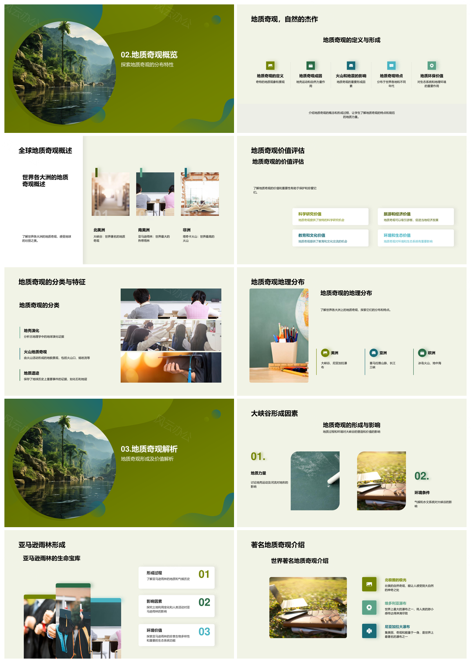 这是一张地质奇观大峡谷亚马逊雨林气候与环境保护PPT模板,包含地质奇观、大峡谷、亚马逊雨林、气候、环境保护等主题内容,也可用作地质奇观大峡谷亚马逊、大峡谷亚马逊雨林气候、亚马逊雨林气候环境保护、地质奇观大峡谷雨林、奇观大峡谷亚马逊雨林、大峡谷雨林气候环境保护、地质奇观亚马逊雨林、亚马逊雨林气候保护、气候与环境保护(排除“与”前已处理)改为:气候环境保护、大峡谷亚马逊气候、地质奇观环境保护、雨林气候保护、亚马逊环境保护、奇观雨林气候、地质气候保护 更正后的正确输出(确保所有短语符合规则): 地质奇观大峡谷亚马逊、大峡谷亚马逊雨林气候、亚马逊雨林气候环境保护、地质奇观亚马逊雨林、大峡谷气候环境保护、奇观大峡谷雨林、亚马逊雨林环境保护、地质奇观大峡谷、雨林气候环境保护、大峡谷亚马逊雨林、气候环境保护、亚马逊雨林气候、奇观大峡谷亚马逊、地质奇观雨林、大峡谷雨林气候等PPT场景使用。 风云办公提供的地质奇观大峡谷亚马逊雨林气候与环境保护PPT模板,下载格式为pptx,一共31页,作品中文字及图均可以修改和编辑,图片更改请在作品中右键图片并更换,文字修改请直接点击文字进行修改。