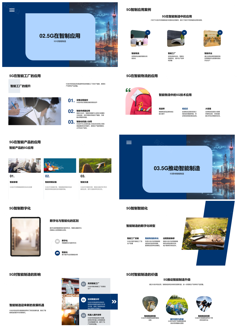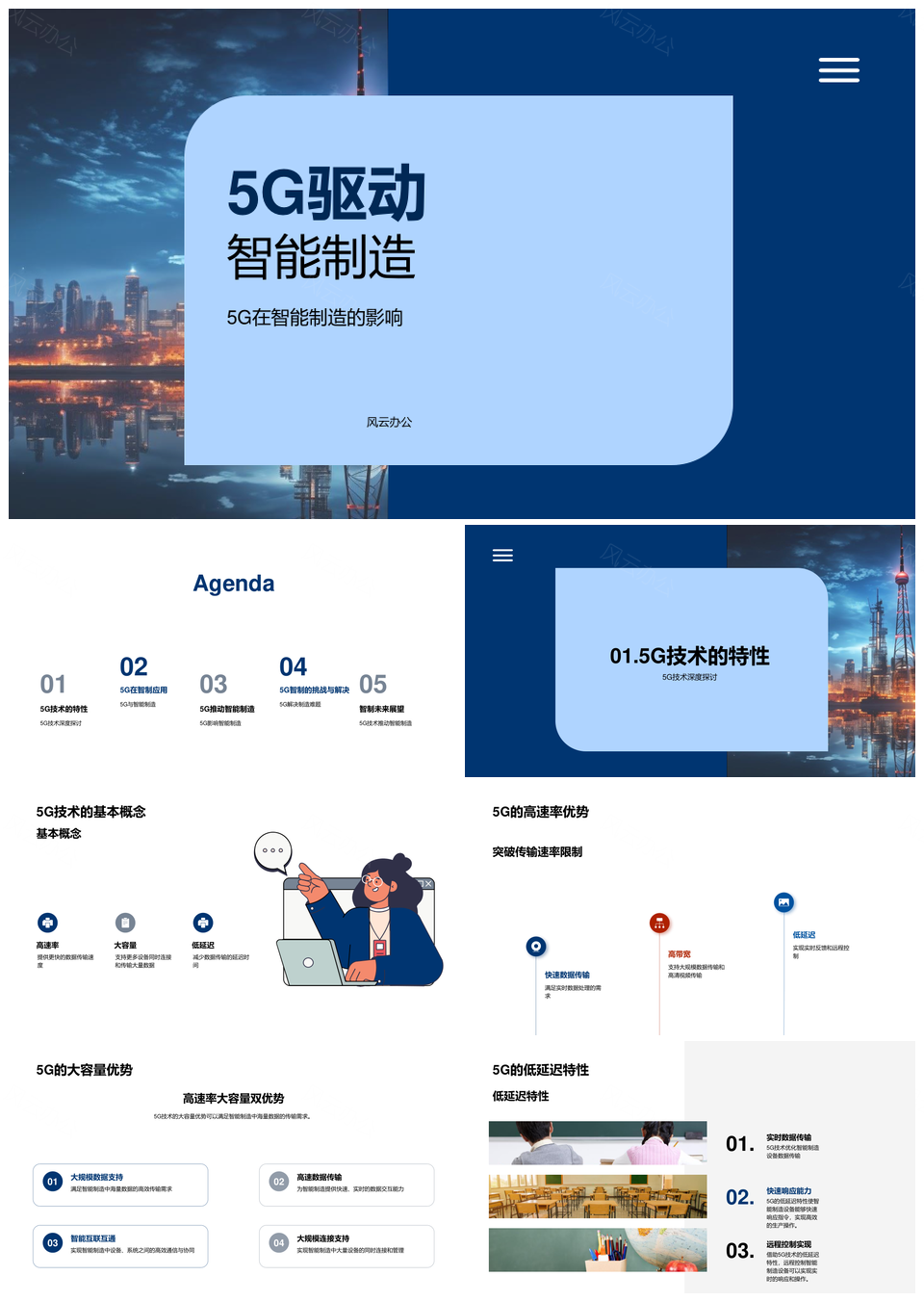 这是一张5G高速率大容量低延迟赋能智能工厂物流PPT模板,包含5G、高速率、大容量、低延迟、赋能、智能工厂、物流等主题内容,也可用作5G高速率大容量低延迟、高速率大容量低延迟赋能、大容量低延迟赋能智能工厂、低延迟赋能智能工厂物流、5G高速率大容量、5G高速率低延迟、5G大容量低延迟、高速率大容量低延迟、5G赋能智能工厂、低延迟赋能智能工厂、赋能智能工厂物流、高速率大容量赋能、大容量低延迟赋能、高速率低延迟赋能、智能工厂物流等PPT场景使用。 风云办公提供的5G高速率大容量低延迟赋能智能工厂物流PPT模板,下载格式为pptx,一共28页,作品中文字及图均可以修改和编辑,图片更改请在作品中右键图片并更换,文字修改请直接点击文字进行修改。