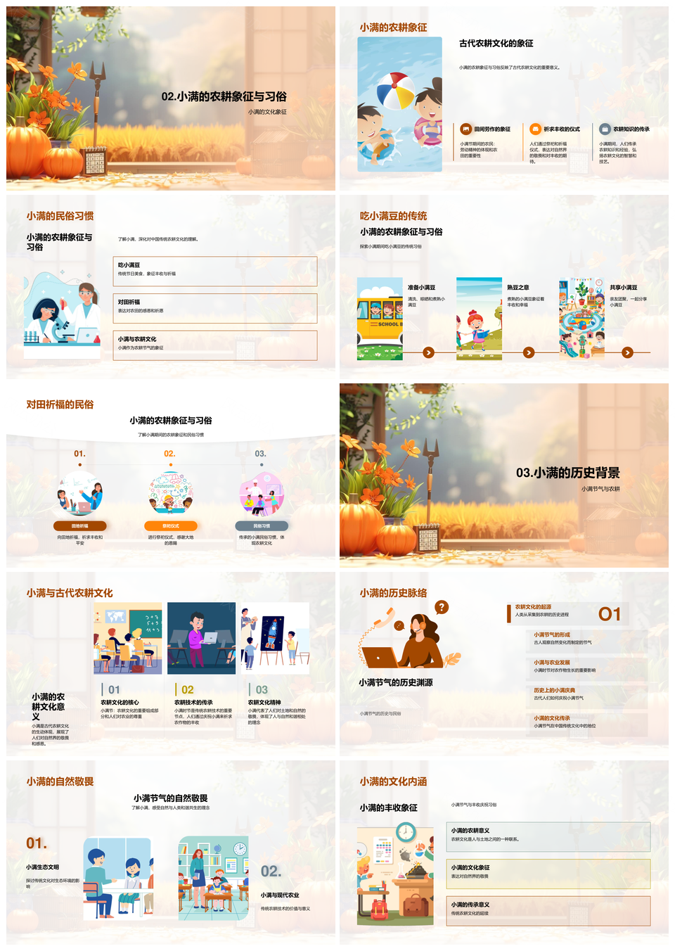 这是一张小满节气农耕民俗与传统文化PPT模板,包含小满、节气、农耕、民俗、传统文化等主题内容,也可用作小满节气农耕民俗、节气农耕民俗传统文化、小满节气农耕、节气农耕民俗、农耕民俗传统文化、小满节气、节气农耕、农耕民俗、民俗传统文化、小满农耕、小满民俗、小满传统文化、节气民俗、节气传统文化、农耕传统文化等PPT场景使用。