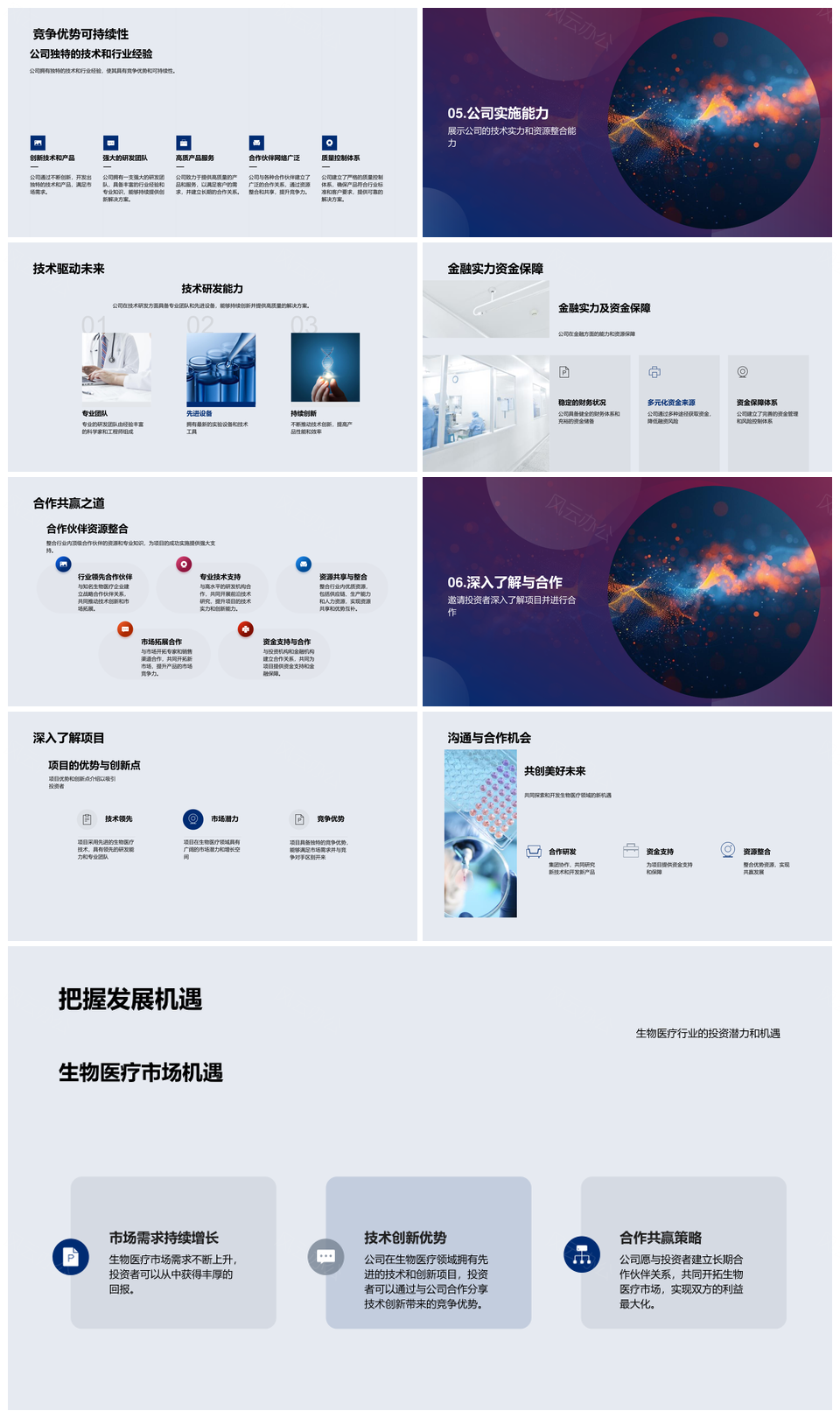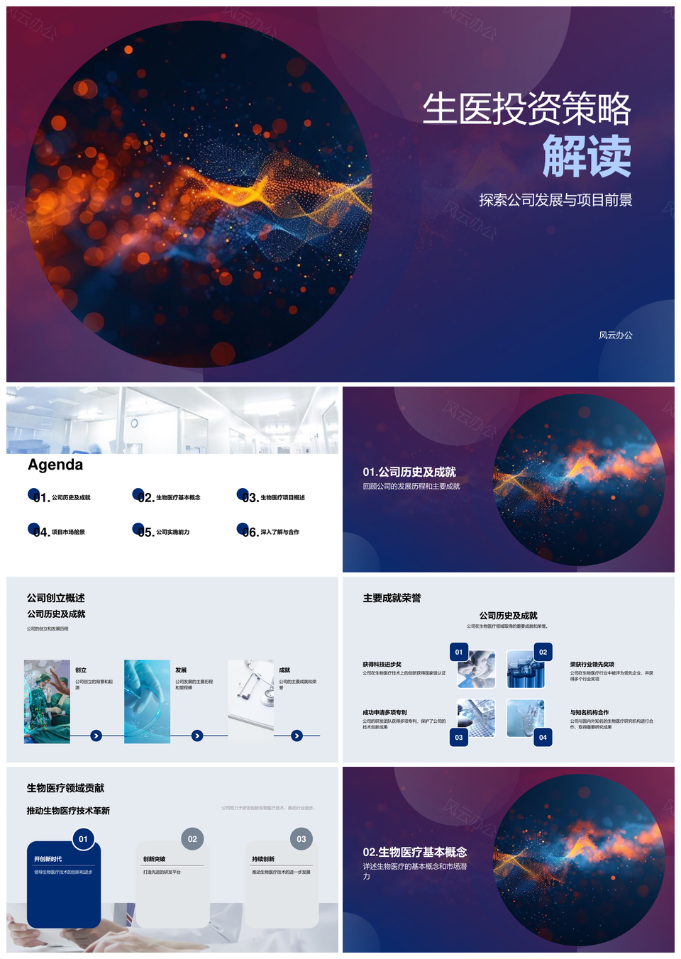 风云办公提供的生物医疗投资策略企业创新市场前景PPT模板,下载格式为pptx,一共27页,作品中文字及图均可以修改和编辑,图片更改请在作品中右键图片并更换,文字修改请直接点击文字进行修改。