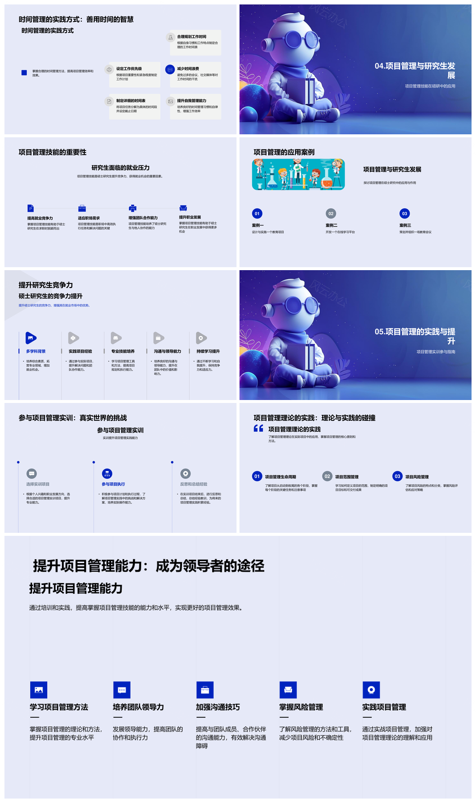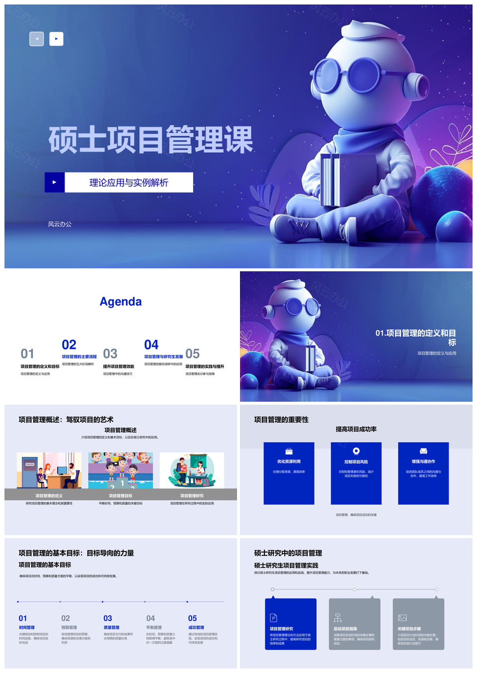 风云办公提供的硕士项目管理理论应用实例阶段解析PPT模板,下载格式为pptx,一共27页,作品中文字及图均可以修改和编辑,图片更改请在作品中右键图片并更换,文字修改请直接点击文字进行修改。
