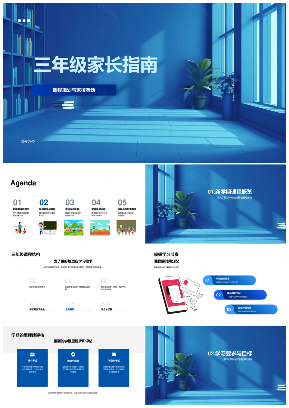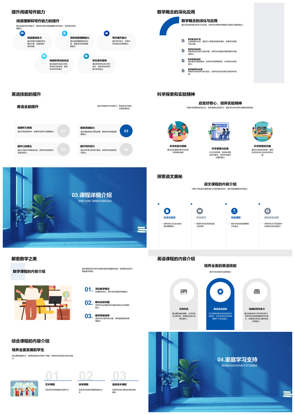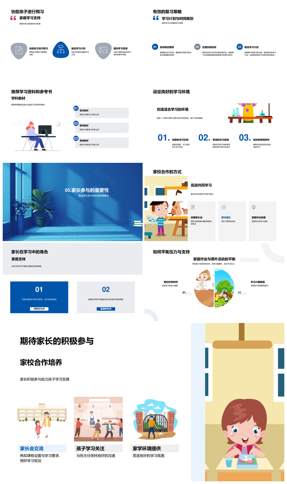 三年级学期规划理解动手学习家校互动情感发展PPT模板