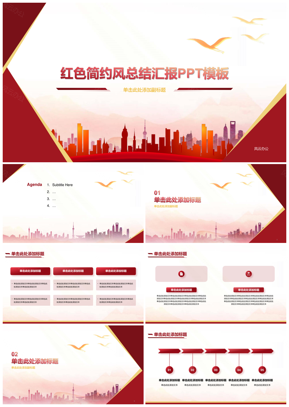 工作计划红色工作总结计划极简约风商务风工作汇报PPT模板