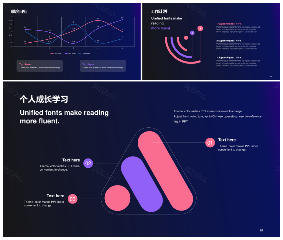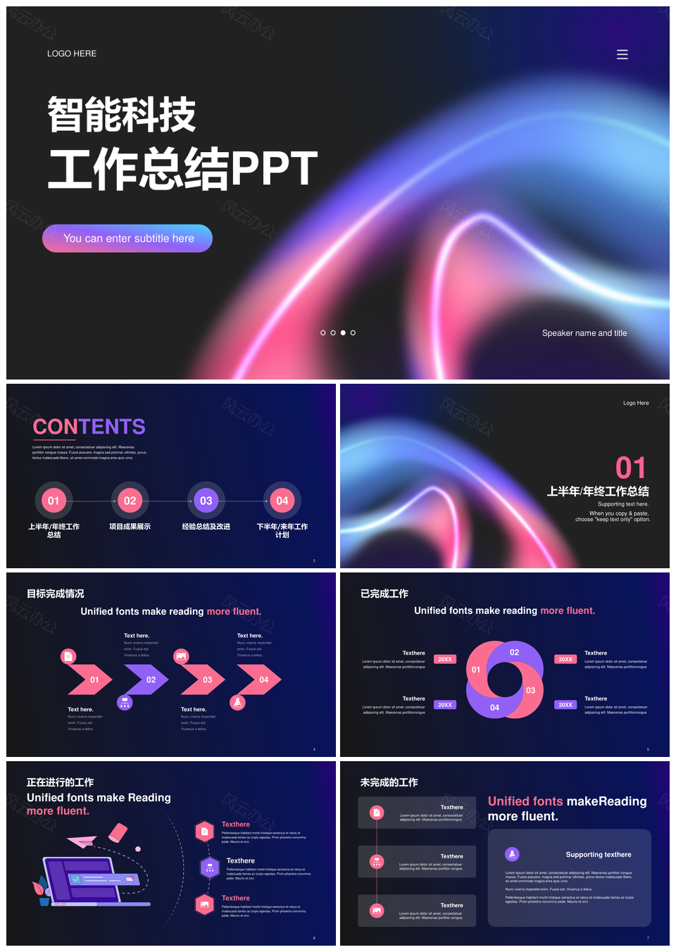 风云办公提供的黑紫粉渐变简约扁平电子科技工作总结PPT模板,下载格式为pptx,一共21页,作品中文字及图均可以修改和编辑,图片更改请在作品中右键图片并更换,文字修改请直接点击文字进行修改。