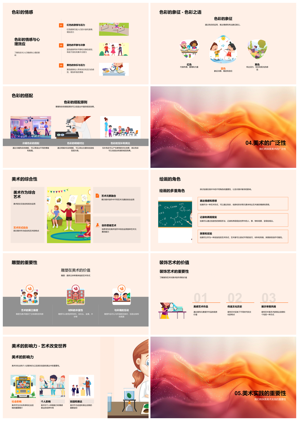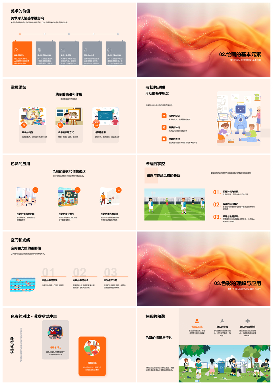 美术基础教学理论与实践线条色彩形状分类PPT模板推荐