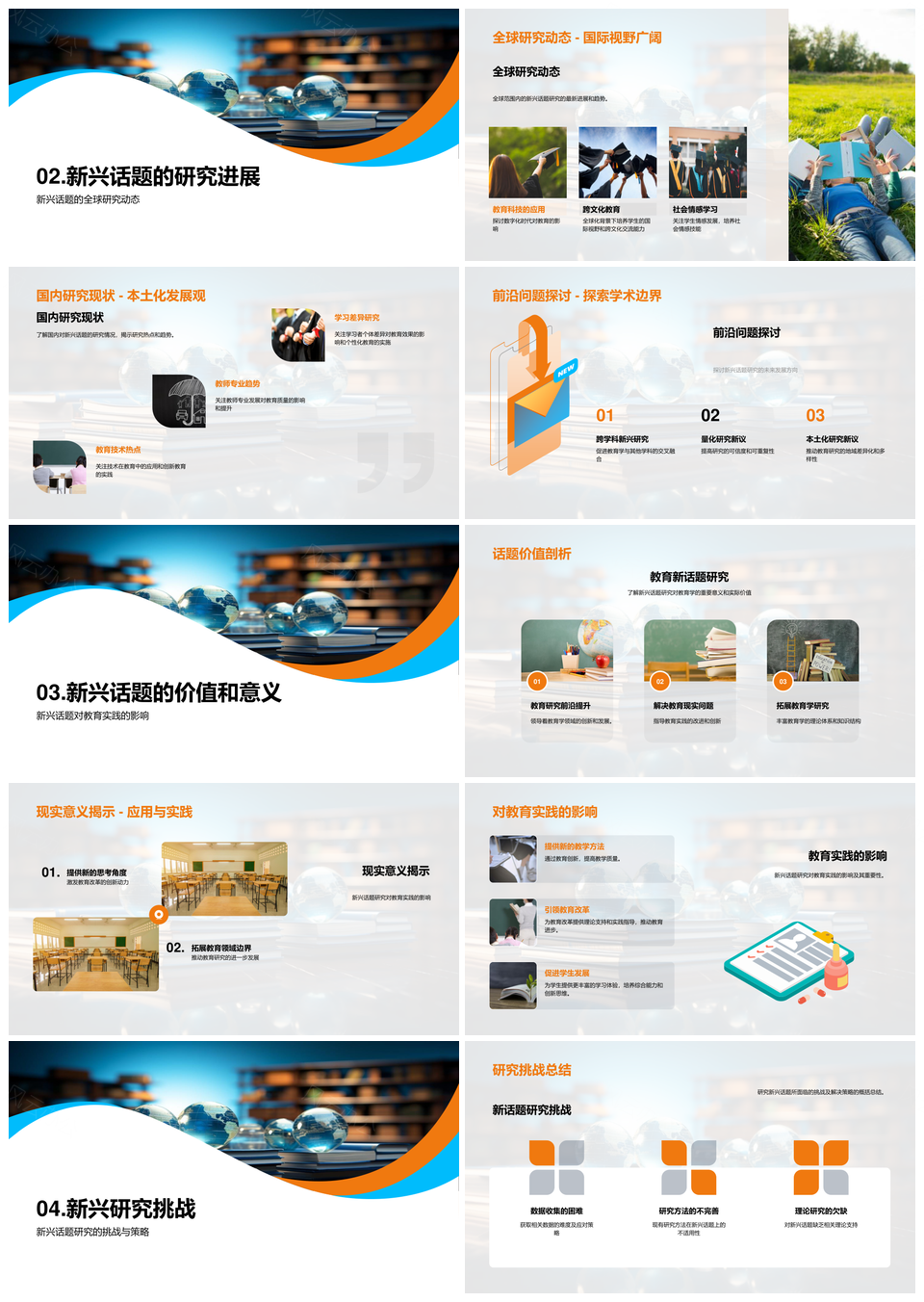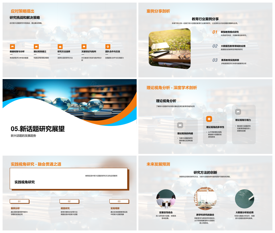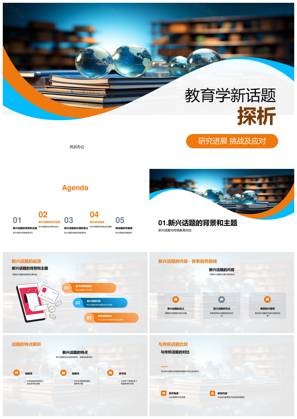 风云办公提供的教育学新话题研究进展挑战应对PPT模板,下载格式为pptx,一共24页,作品中文字及图均可以修改和编辑,图片更改请在作品中右键图片并更换,文字修改请直接点击文字进行修改。