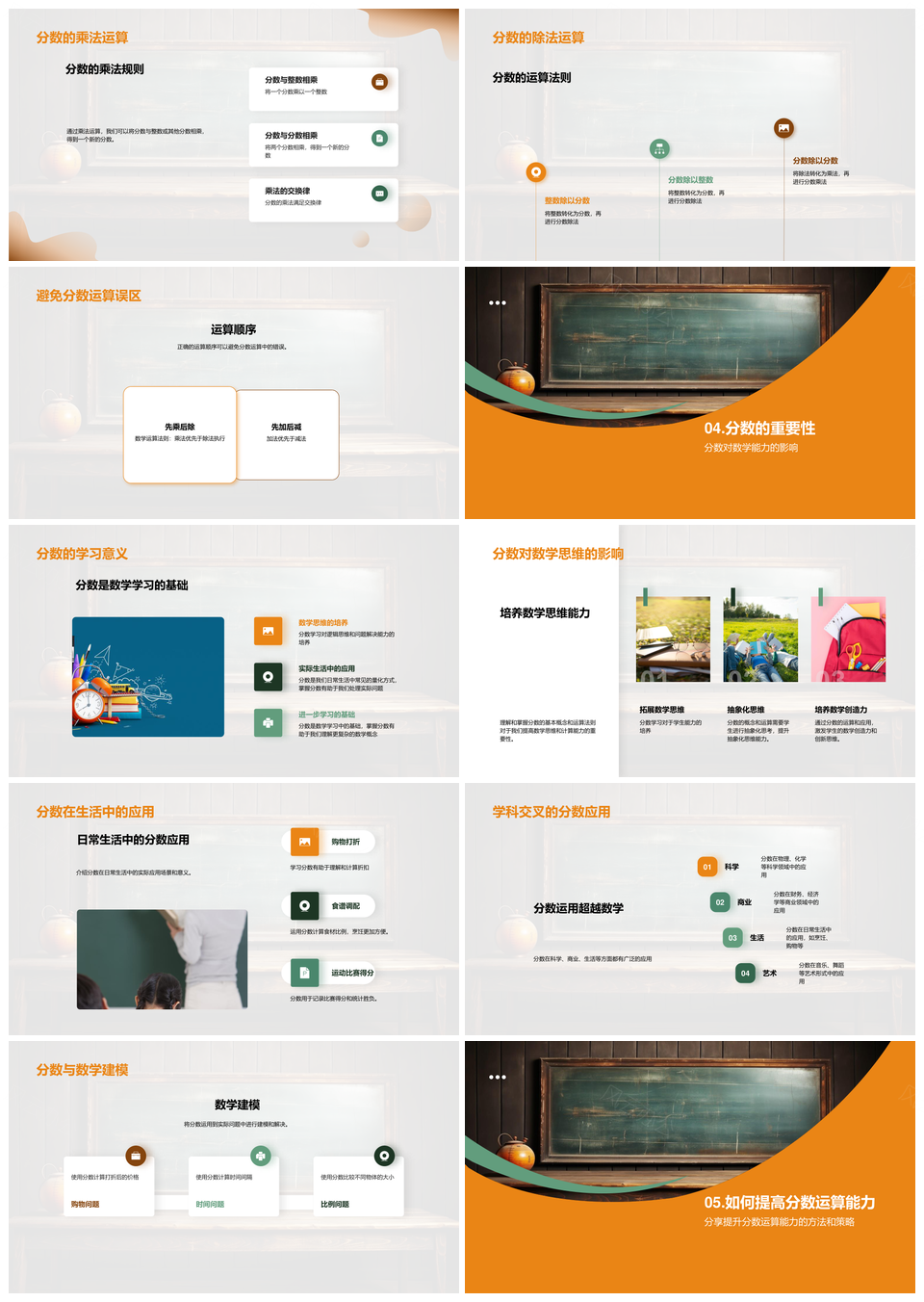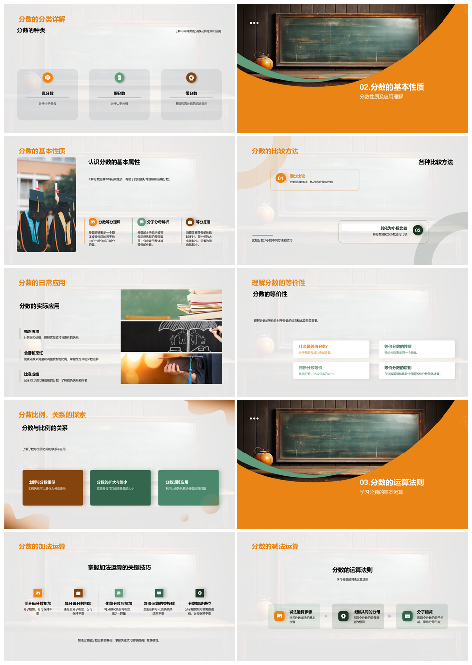 分数运算基本概念分子分母四则黑板技巧PPT模板推荐