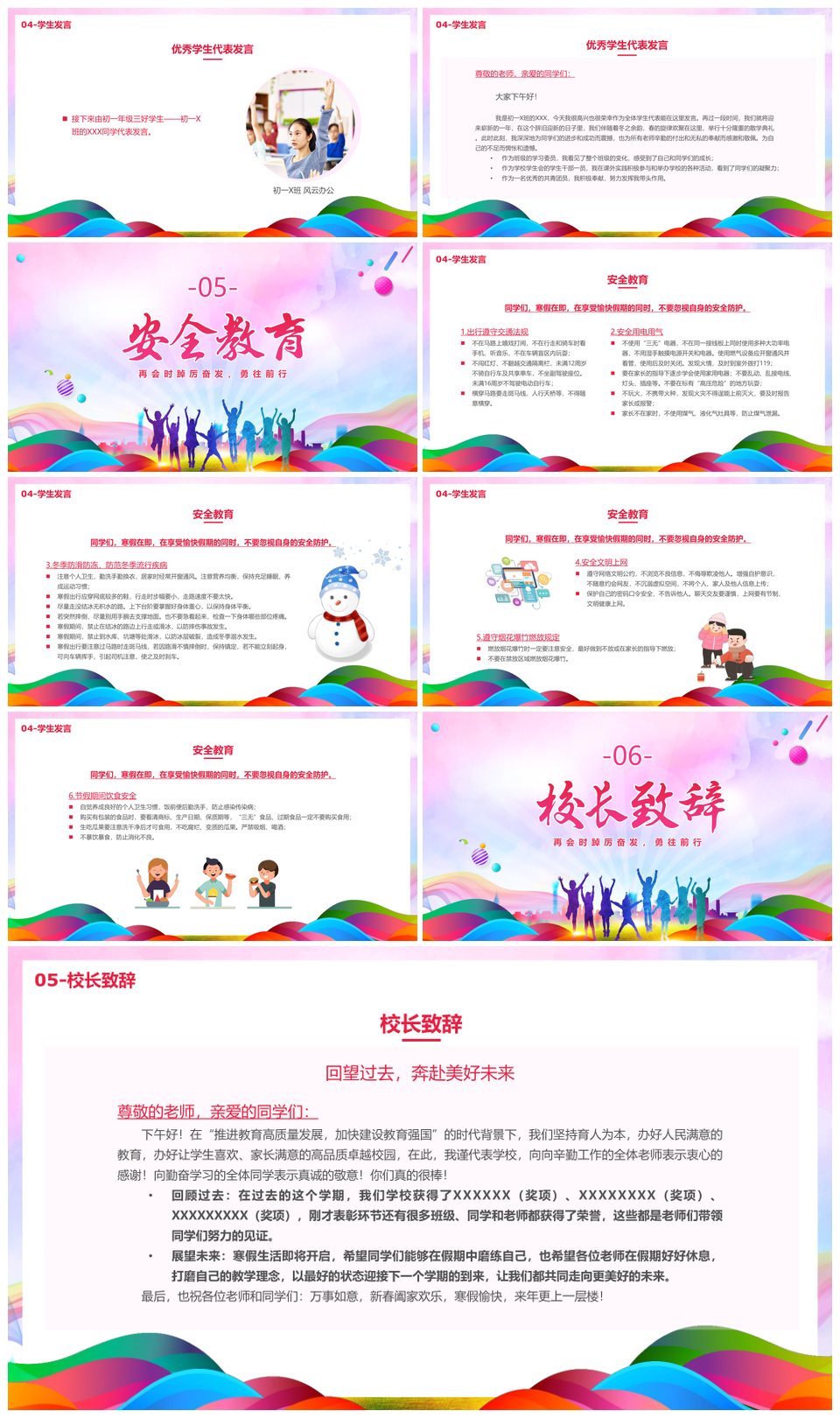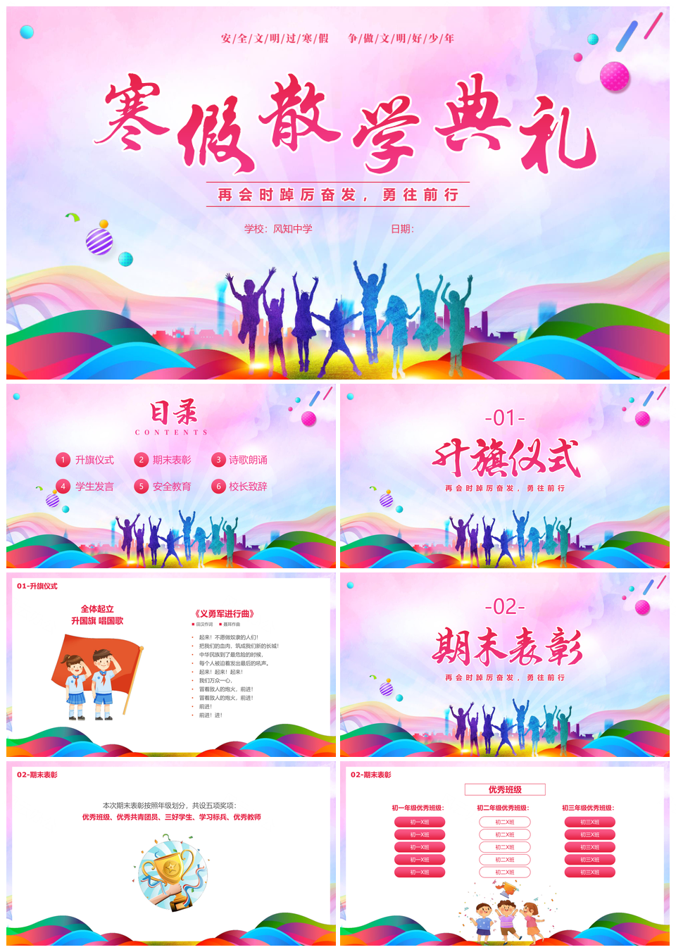 这是一张炫彩插画寒假散学典礼安全教育班会PPT模板,包含炫彩插画、寒假、散学典礼、安全教育、班会等主题内容,也可用作炫彩插画寒假散学典礼、寒假散学典礼安全教育班会、炫彩插画散学典礼、散学典礼安全教育班会、寒假安全教育班会、炫彩插画安全教育班会、寒假散学典礼班会、炫彩插画寒假、炫彩插画班会、寒假散学典礼安全、寒假散学典礼、散学典礼安全教育、安全教育班会、寒假安全教育、散学典礼班会等PPT场景使用。