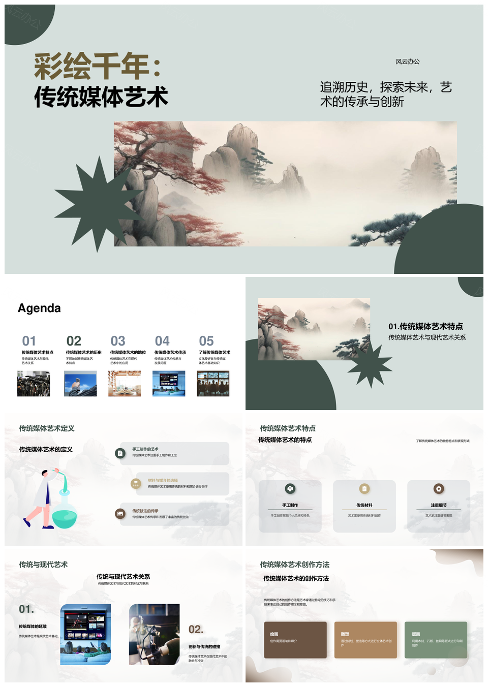风云办公提供的传统中国画文化传承与艺术教育课堂PPT模板,下载格式为pptx,一共29页,作品中文字及图均可以修改和编辑,图片更改请在作品中右键图片并更换,文字修改请直接点击文字进行修改。