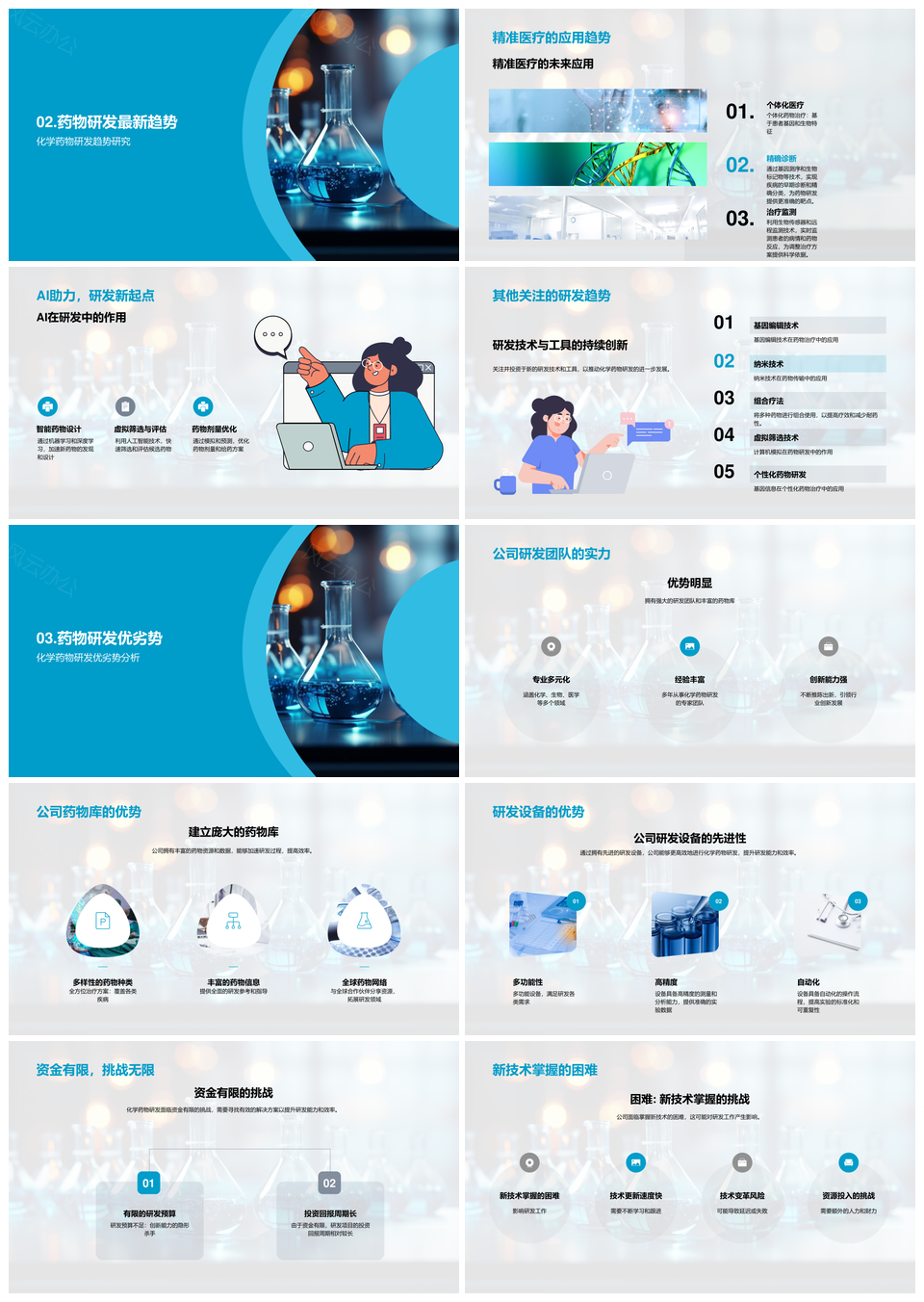 这是一张人工智能驱动化学药物研发创新精准医疗PPT模板,包含人工智能、驱动、化学药物、研发、创新、精准医疗等主题内容,也可用作人工智能驱动化学药物研发、人工智能驱动化学药物、驱动化学药物研发创新、化学药物研发创新精准医疗、驱动化学药物研发、化学药物研发创新、研发创新精准医疗、人工智能驱动、驱动化学药物、化学药物研发、研发创新、创新精准医疗、驱动研发、研发精准医疗、驱动创新等PPT场景使用。 风云办公提供的人工智能驱动化学药物研发创新精准医疗PPT模板,下载格式为pptx,一共27页,作品中文字及图均可以修改和编辑,图片更改请在作品中右键图片并更换,文字修改请直接点击文字进行修改。