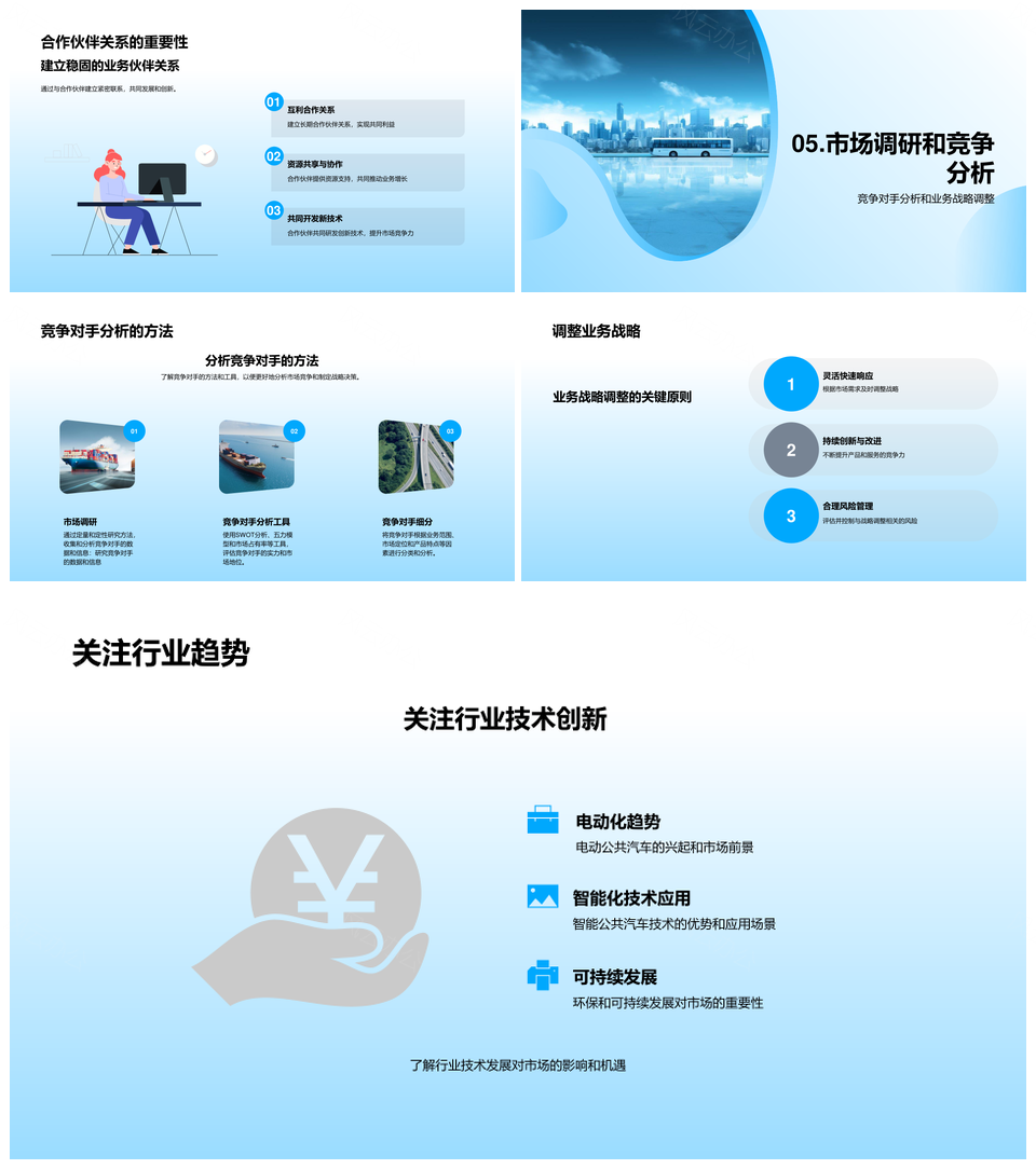 这是一张电动公交市场竞争趋势及智能化技术分析PPT模板,包含电动公交、市场、竞争、趋势、智能化、技术、分析等主题内容,也可用作电动公交市场竞争趋势及智能化技术、电动公交市场竞争趋势分析、市场竞争趋势及智能化技术分析、电动公交智能化技术分析、电动公交市场竞争趋势、市场竞争趋势智能化技术、电动公交市场智能化技术、电动公交智能化技术、市场竞争趋势分析、电动公交竞争趋势、智能化技术分析、电动公交市场、市场竞争趋势、电动公交技术、技术分析等PPT场景使用。 风云办公提供的电动公交市场竞争趋势及智能化技术分析PPT模板,下载格式为pptx,一共23页,作品中文字及图均可以修改和编辑,图片更改请在作品中右键图片并更换,文字修改请直接点击文字进行修改。