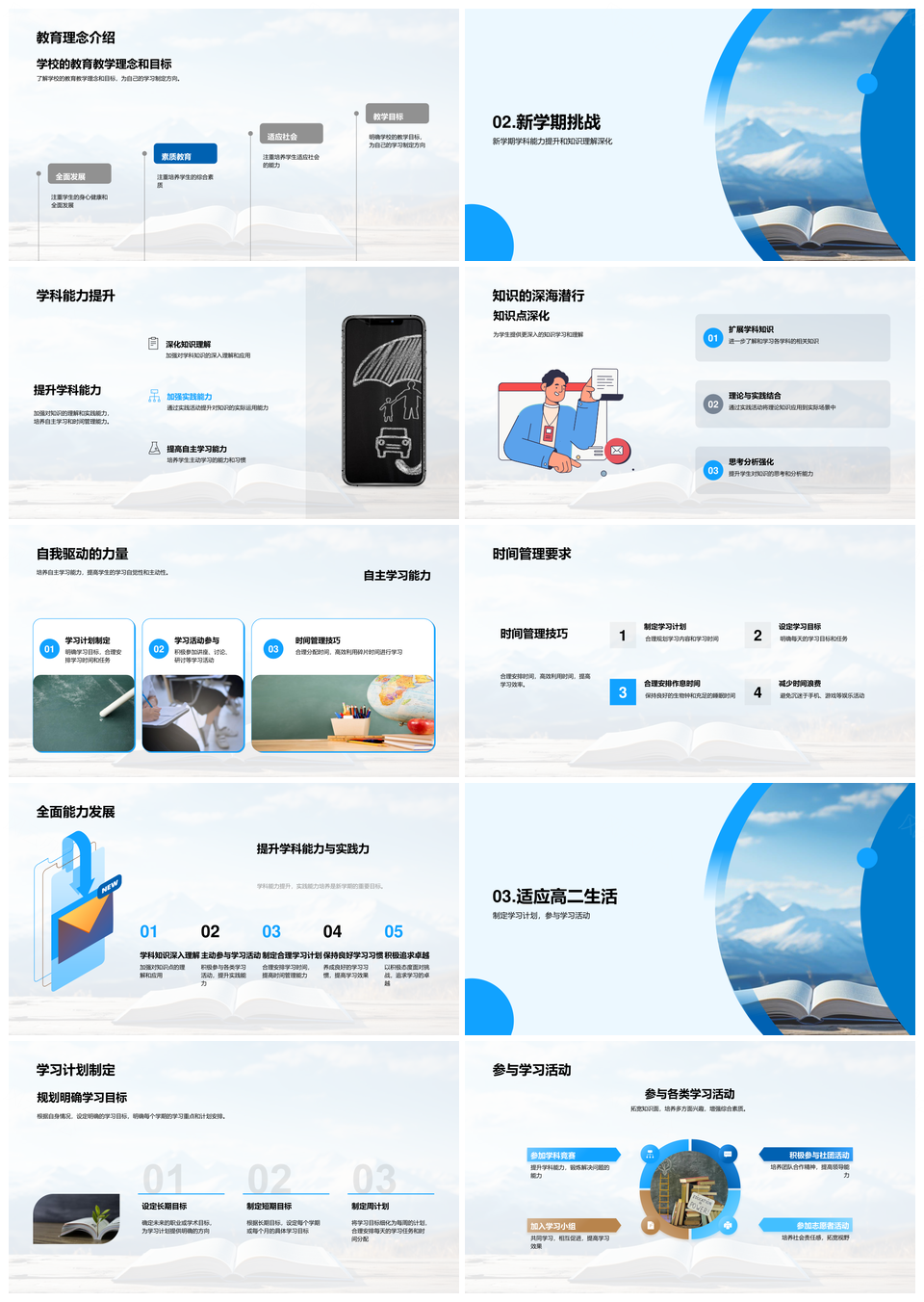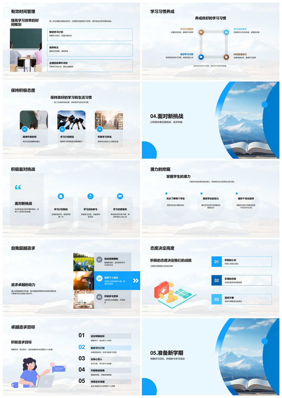这是一张高二新征程提能深识自主计划高效习惯启卷PPT模板,包含高二、新征程、提能、深识、自主计划、高效习惯、启卷等主题内容,也可用作高二新征程提能深识、高二新征程提能自主、高二新征程自主计划、高二提能深识自主、提能深识自主计划、自主计划高效习惯、计划高效习惯启卷、新征程提能深识自主、提能深识高效习惯、深识自主计划高效、高二自主计划高效、高二提能深识高效、自主计划高效启卷、高效习惯启卷计划、高二新征程自主高效等PPT场景使用。 风云办公提供的高二新征程提能深识自主计划高效习惯启卷PPT模板,下载格式为pptx,一共33页,作品中文字及图均可以修改和编辑,图片更改请在作品中右键图片并更换,文字修改请直接点击文字进行修改。