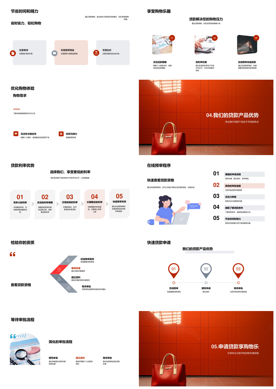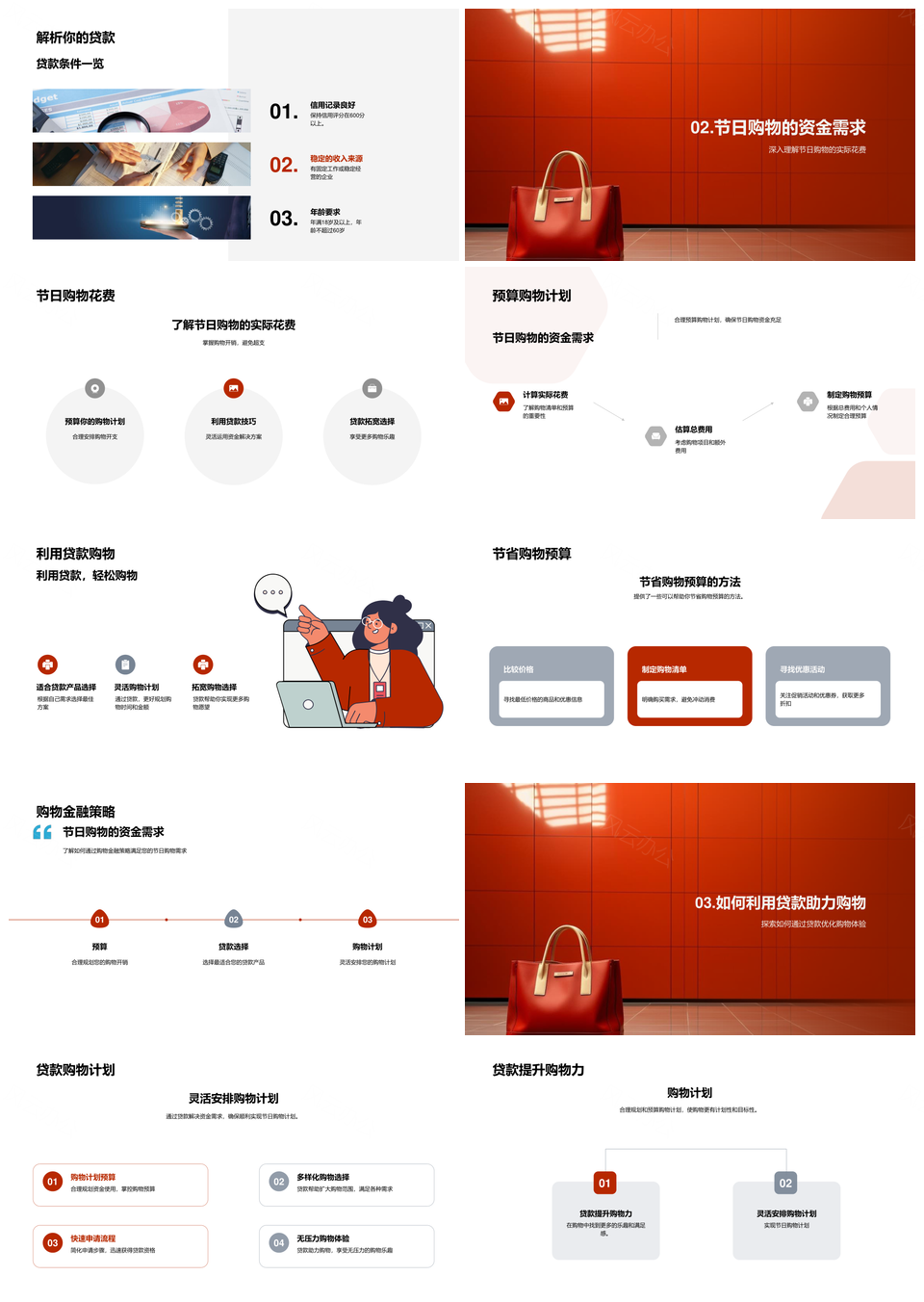 这是一张节日贷款购物策略银行利率在线预审流程PPT模板,包含节日、贷款、购物、策略、银行、利率、在线、预审、流程等主题内容,也可用作节日贷款购物策略、银行利率在线预审、利率在线预审流程、节日贷款购物、贷款购物策略、银行利率在线、利率在线预审、在线预审流程、节日贷款、贷款购物、购物策略、银行利率、利率在线、在线预审、预审流程等PPT场景使用。 风云办公提供的节日贷款购物策略银行利率在线预审流程PPT模板,下载格式为pptx,一共33页,作品中文字及图均可以修改和编辑,图片更改请在作品中右键图片并更换,文字修改请直接点击文字进行修改。
