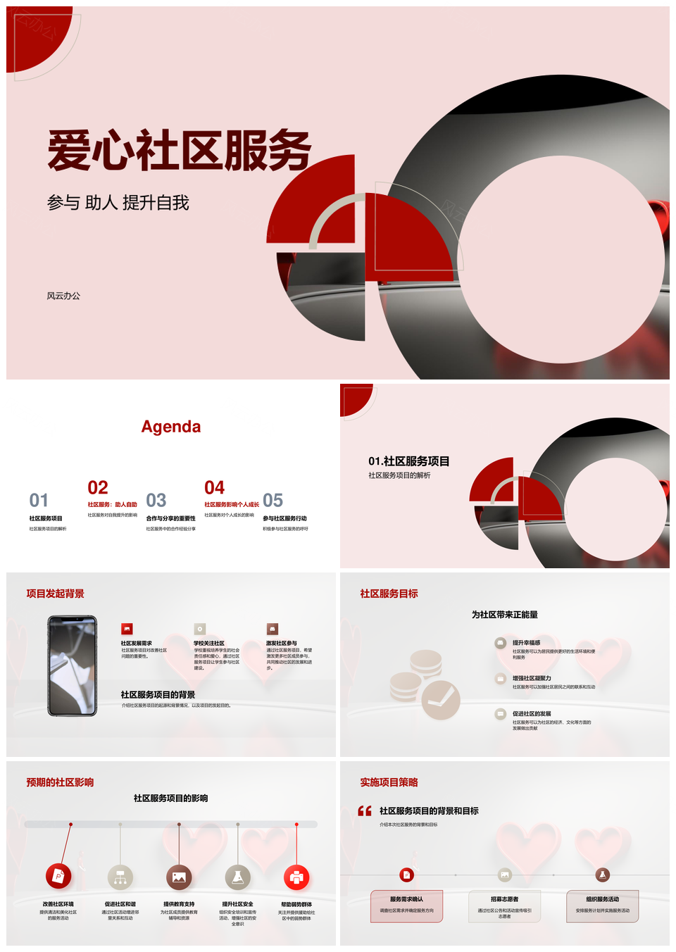 风云办公提供的爱心社区服务助人自助成长行动PPT模板,下载格式为pptx,一共33页,作品中文字及图均可以修改和编辑,图片更改请在作品中右键图片并更换,文字修改请直接点击文字进行修改。