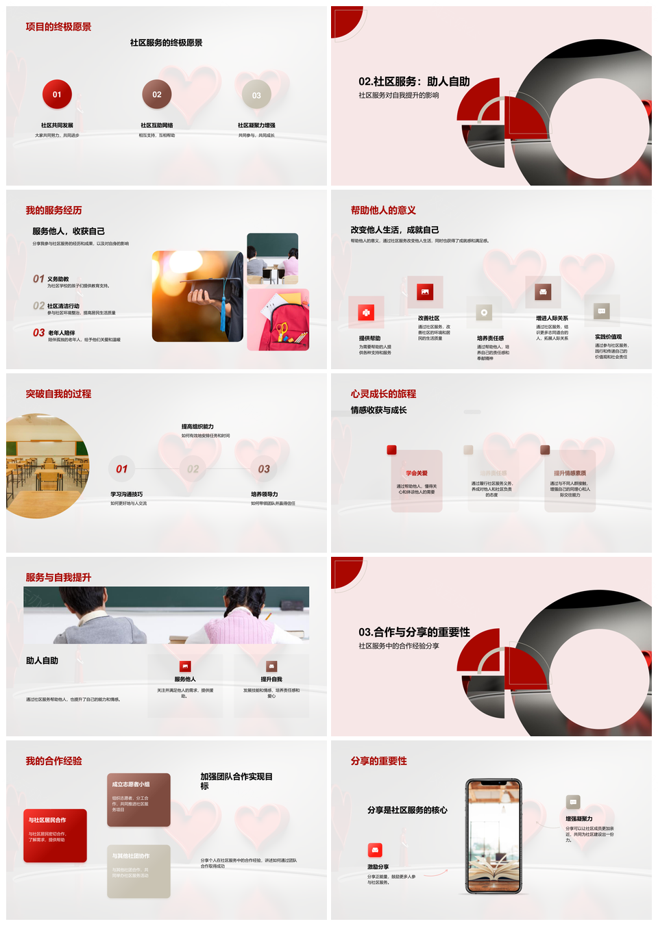 这是一张爱心社区服务助人自助成长行动PPT模板,包含爱心社区、服务、助人、自助、成长行动等主题内容,也可用作爱心社区服务助人、社区服务助人自助、服务助人自助成长、助人自助成长行动、爱心社区服务、社区服务助人、服务助人自助、助人自助成长、自助成长行动、爱心社区、社区服务、服务助人、助人自助、自助成长、成长行动等PPT场景使用。