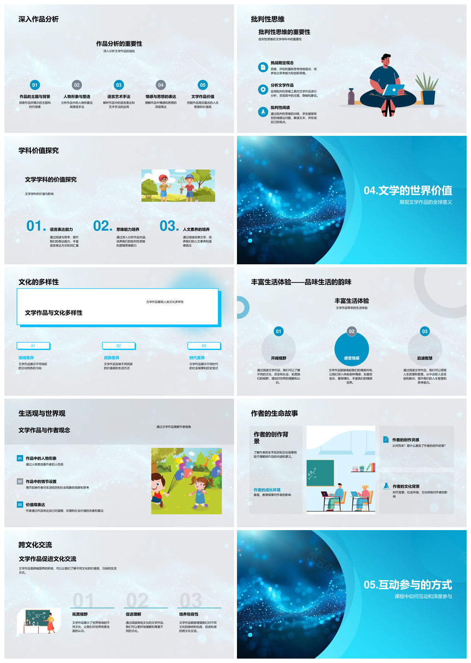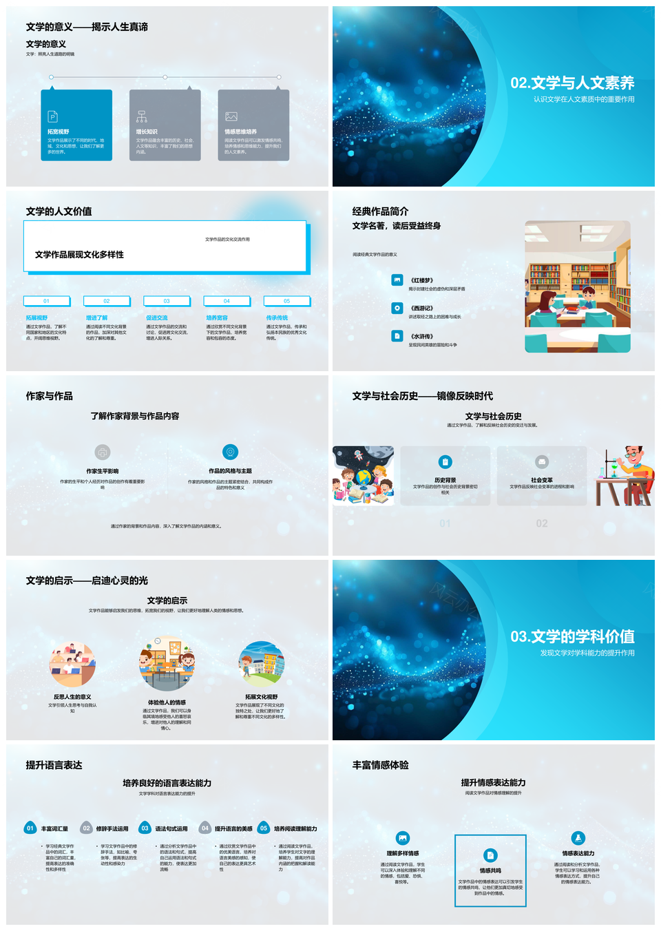 六年级文学经典魅力形式人文素养社会历史思维表达PPT模板推荐