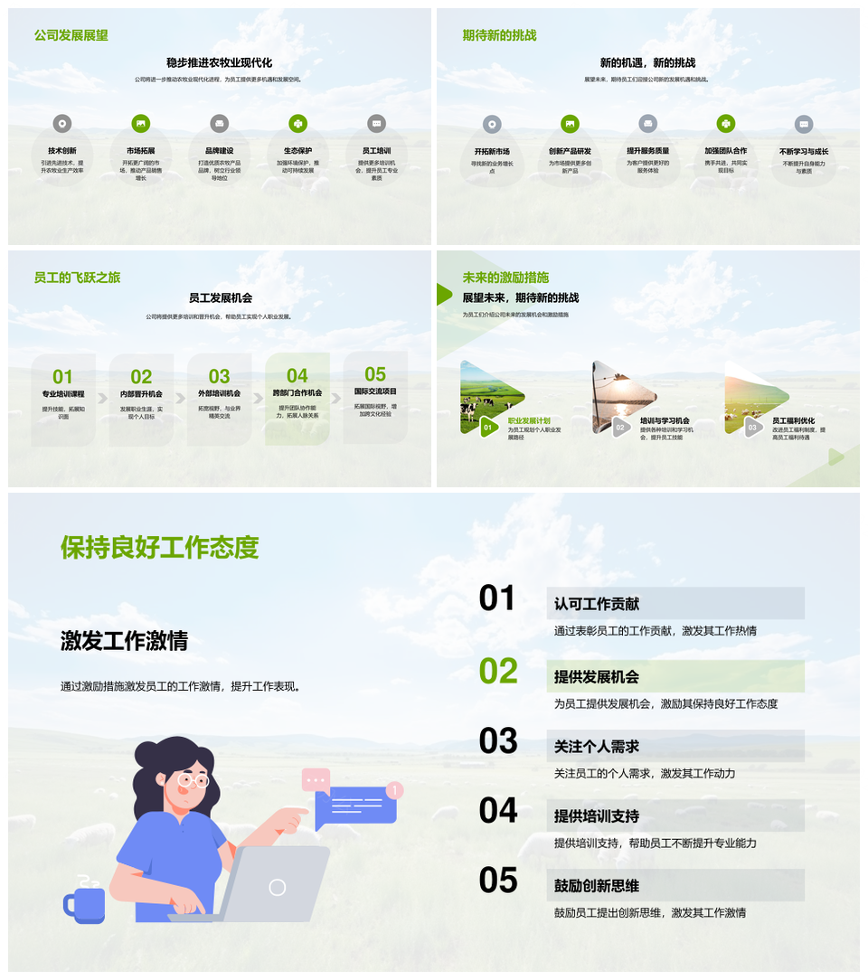 风云办公提供的牧场员工勇担挑战提升技能助农牧发展PPT模板,下载格式为pptx,一共33页,作品中文字及图均可以修改和编辑,图片更改请在作品中右键图片并更换,文字修改请直接点击文字进行修改。