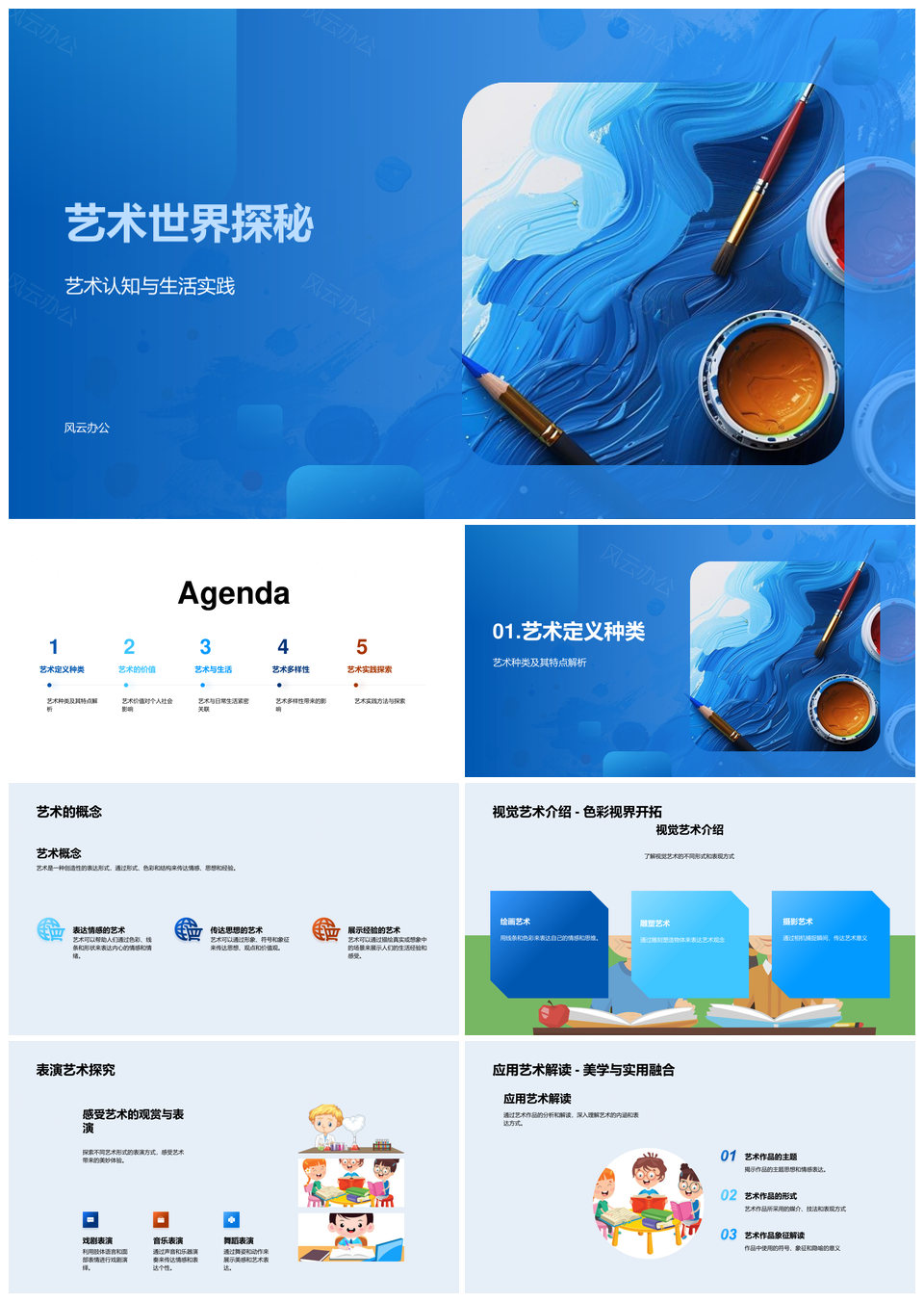 风云办公提供的艺术世界种类认知实践价值探秘PPT模板,下载格式为pptx,一共33页,作品中文字及图均可以修改和编辑,图片更改请在作品中右键图片并更换,文字修改请直接点击文字进行修改。
