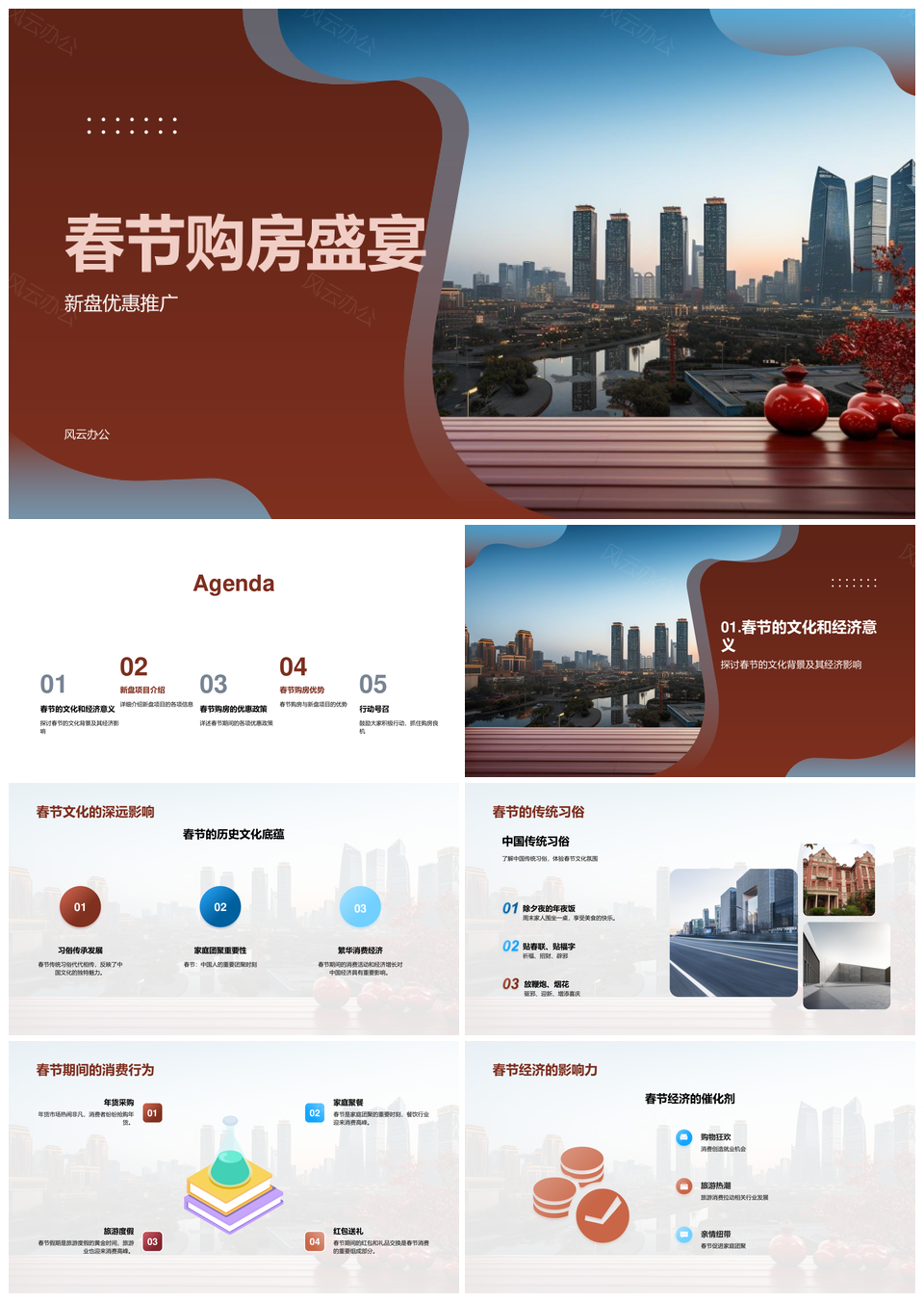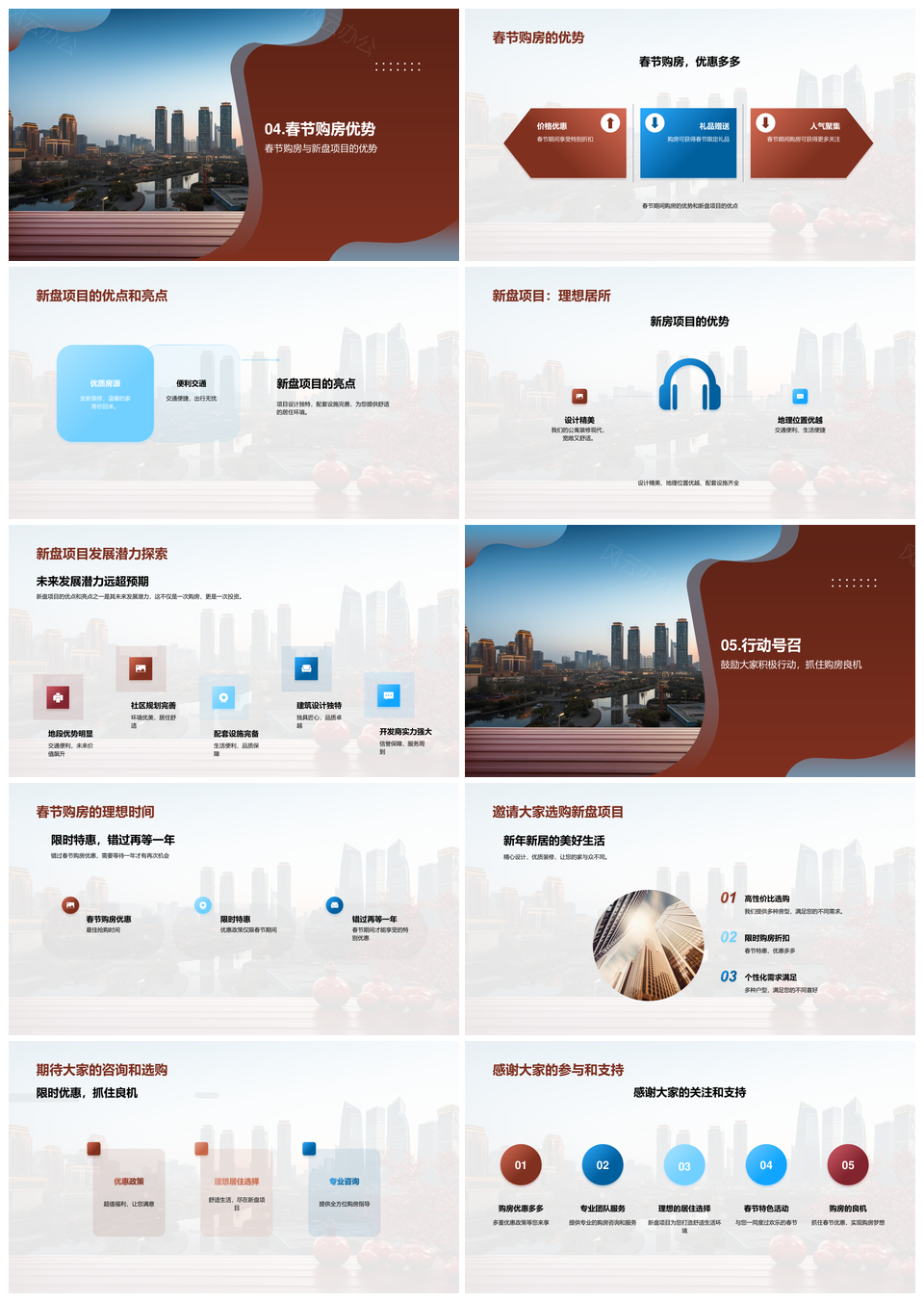春节购房金融政策技巧市场趋势促销优惠流程社区PPT模板