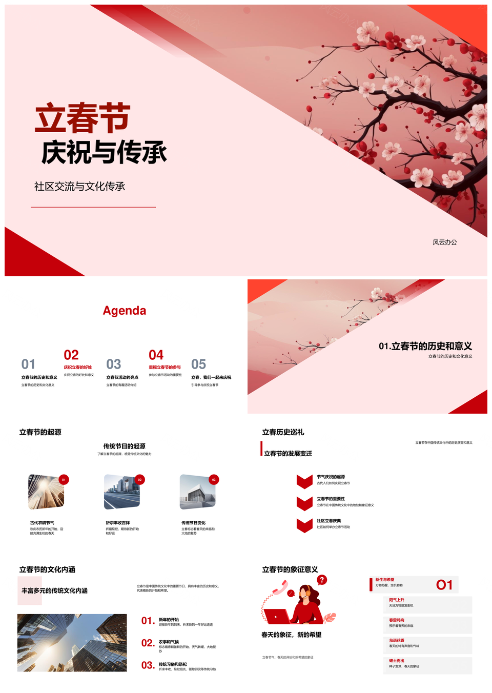 风云办公提供的立春社区庆传承春联聚情谊PPT模板,下载格式为pptx,一共27页,作品中文字及图均可以修改和编辑,图片更改请在作品中右键图片并更换,文字修改请直接点击文字进行修改。