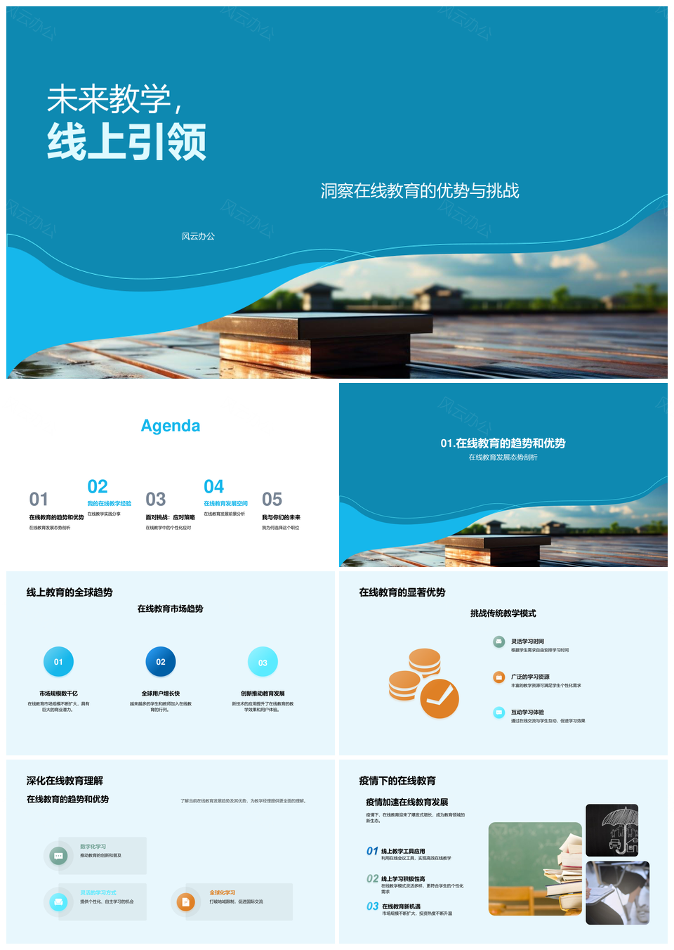 风云办公提供的线上引领未来教学优势挑战策略成果PPT模板,下载格式为pptx,一共33页,作品中文字及图均可以修改和编辑,图片更改请在作品中右键图片并更换,文字修改请直接点击文字进行修改。