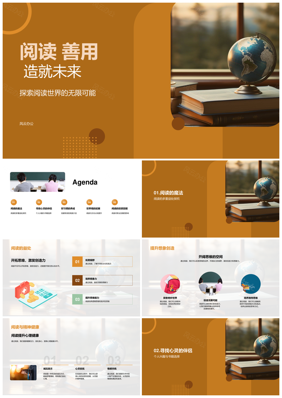 风云办公提供的阅读善用图书馆筑梦未来PPT模板,下载格式为pptx,一共23页,作品中文字及图均可以修改和编辑,图片更改请在作品中右键图片并更换,文字修改请直接点击文字进行修改。