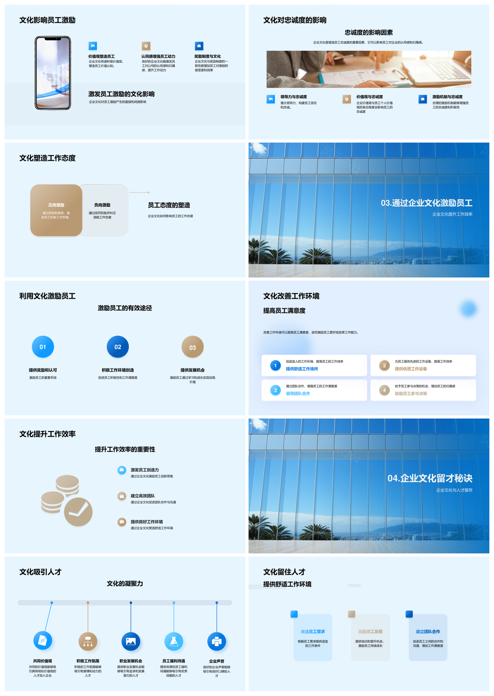 这是一张企业文化人才管理激励忠诚环境效率留存PPT模板,包含企业文化、人才管理、激励、忠诚、环境、效率、留存等主题内容,也可用作企业文化人才管理激励、人才管理激励忠诚、管理激励忠诚环境、激励忠诚环境效率、企业文化激励效率留存、人才管理环境效率、管理激励效率留存、企业文化人才忠诚、管理环境效率留存、人才激励忠诚效率、企业文化管理留存、激励环境效率留存、人才管理效率、忠诚环境效率、企业人才激励等PPT场景使用。 风云办公提供的企业文化人才管理激励忠诚环境效率留存PPT模板,下载格式为pptx,一共23页,作品中文字及图均可以修改和编辑,图片更改请在作品中右键图片并更换,文字修改请直接点击文字进行修改。