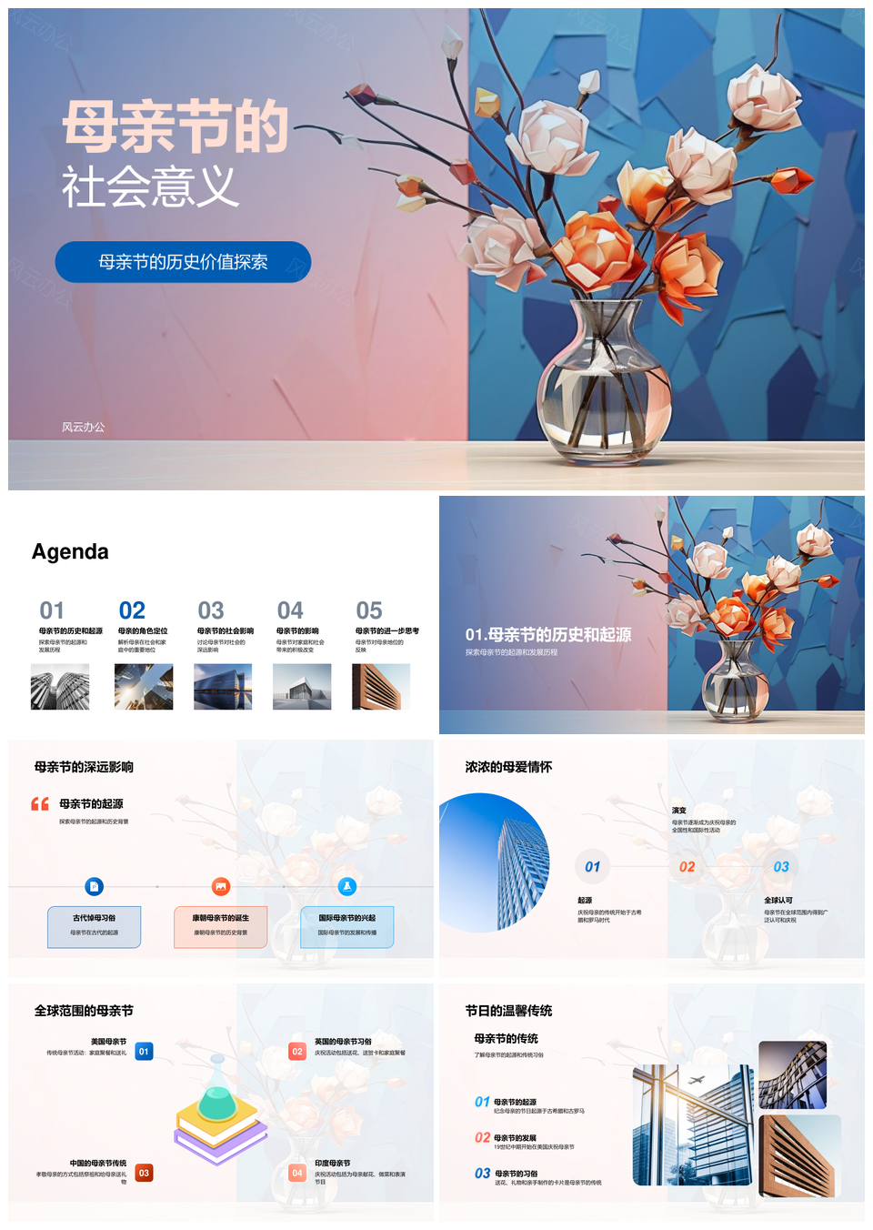风云办公提供的母亲节全球母爱奉献社会意义PPT模板,下载格式为pptx,一共28页,作品中文字及图均可以修改和编辑,图片更改请在作品中右键图片并更换,文字修改请直接点击文字进行修改。