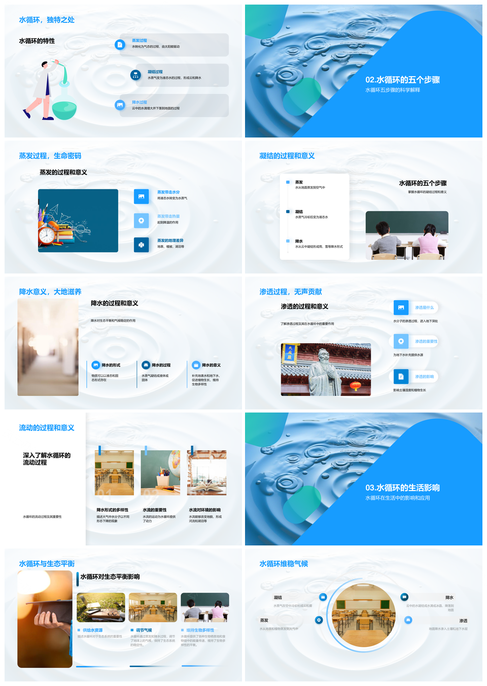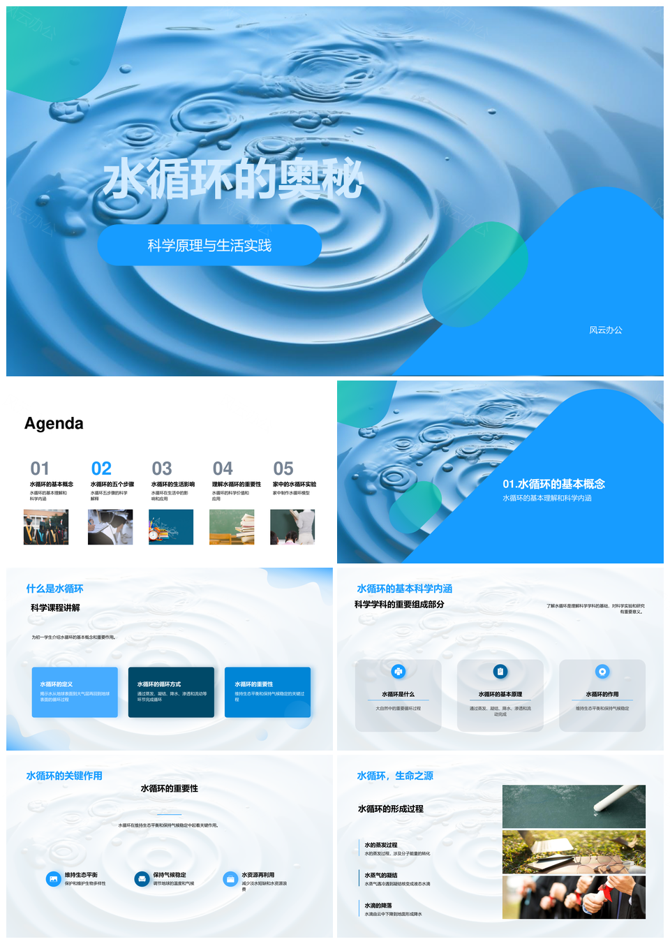 风云办公提供的水循环科学原理与生活实践探秘PPT模板,下载格式为pptx,一共30页,作品中文字及图均可以修改和编辑,图片更改请在作品中右键图片并更换,文字修改请直接点击文字进行修改。