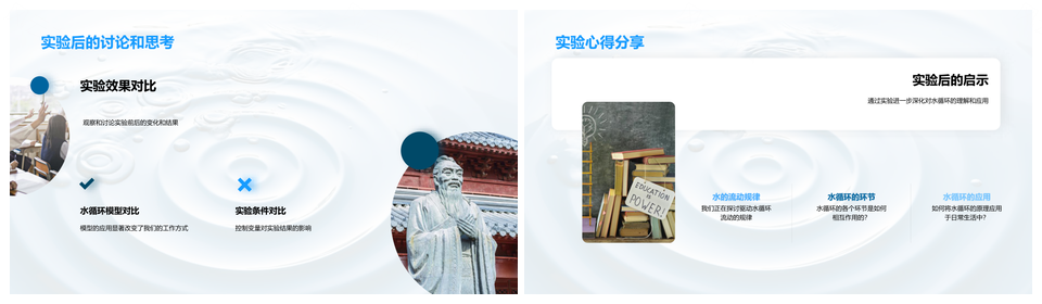 这是一张水循环科学原理与生活实践探秘PPT模板,包含水循环、科学原理、生活实践、探秘等主题内容,也可用作水循环科学原理生活实践、科学原理生活实践探秘、水循环科学原理生活、科学原理生活实践、原理生活实践探秘、水循环科学原理、科学原理生活、原理生活实践、生活实践探秘、水循环科学、科学原理、原理生活、生活实践、实践探秘、水循环原理等PPT场景使用。