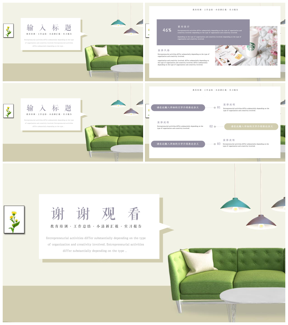 黄色室内装修PPT模板