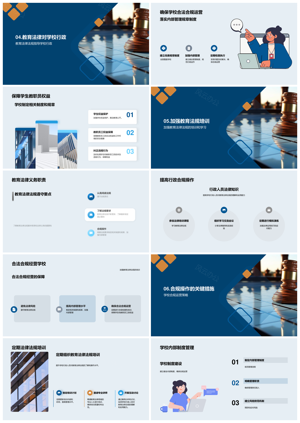 风云办公提供的教育法规学校行政责任义务解析PPT模板,下载格式为pptx,一共30页,作品中文字及图均可以修改和编辑,图片更改请在作品中右键图片并更换,文字修改请直接点击文字进行修改。