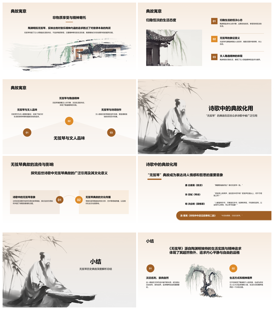 这是一张无弦琴典故艺境创悟传统文化PPT模板,包含无弦琴、典故、艺境、创悟、传统文化等主题内容,也可用作无弦琴典故艺境创悟、典故艺境创悟传统文化、无弦琴典故艺境、无弦琴典故创悟、无弦琴艺境创悟、典故艺境创悟、艺境创悟传统文化、无弦琴传统文化、典故艺境、艺境创悟、创悟传统文化、无弦琴典故、艺境传统文化、创悟传统文化、典故创悟传统文化等PPT场景使用。