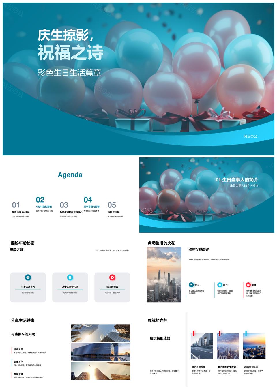 风云办公提供的生辰掠影秘趣糕诗祝语PPT模板,下载格式为pptx,一共28页,作品中文字及图均可以修改和编辑,图片更改请在作品中右键图片并更换,文字修改请直接点击文字进行修改。