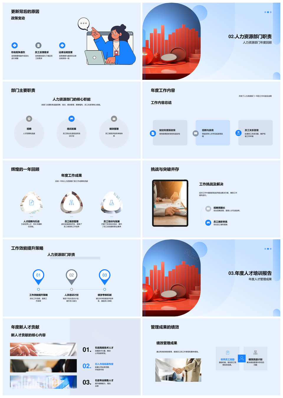 这是一张人力资源年度总结政策制度人才培养部门职责PPT模板,包含人力资源、年度总结、政策制度、人才培养、部门职责等主题内容,也可用作人力资源政策制度人才培养部门职责、人力资源年度总结政策制度、年度总结政策制度人才培养、政策制度人才培养部门职责、人力资源人才培养部门职责、人力资源年度总结部门职责、人力资源年度总结、人力资源政策制度、人力资源人才培养、人力资源部门职责、年度总结政策制度、年度总结人才培养、年度总结部门职责、政策制度人才培养、政策制度部门职责等PPT场景使用。 风云办公提供的人力资源年度总结政策制度人才培养部门职责PPT模板,下载格式为pptx,一共33页,作品中文字及图均可以修改和编辑,图片更改请在作品中右键图片并更换,文字修改请直接点击文字进行修改。
