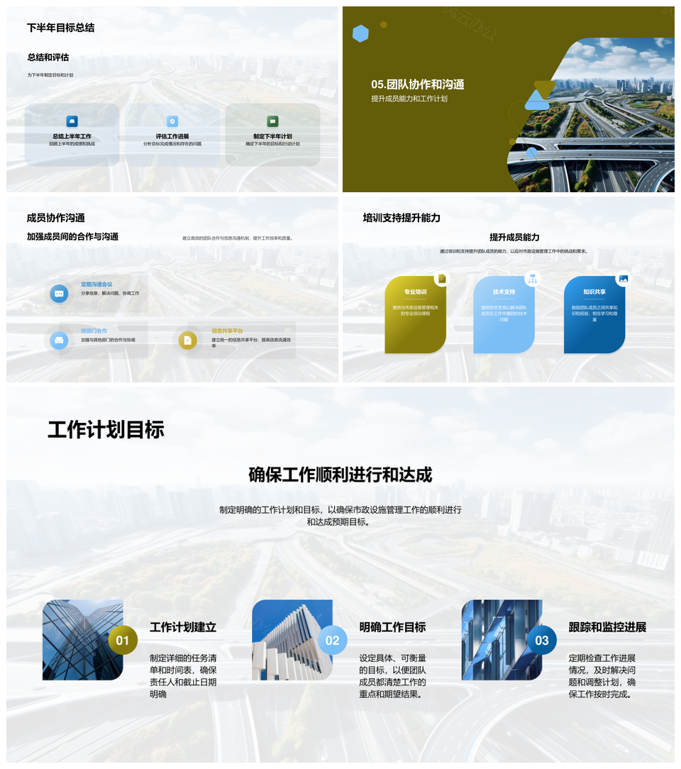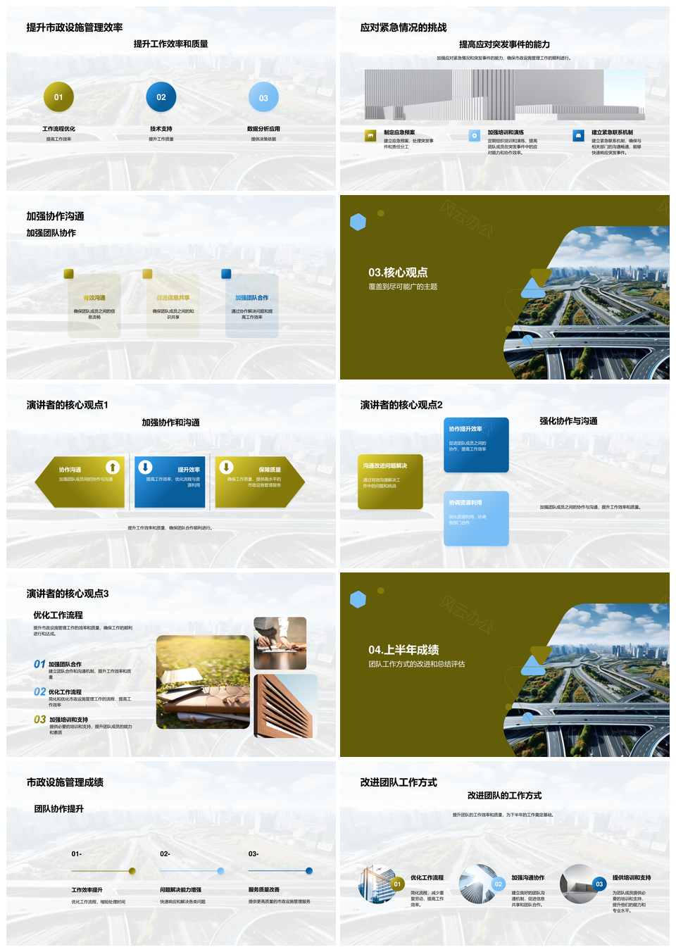 这是一张市政设施管理年中总结团队效率成果显著PPT模板,包含市政设施、管理、年中总结、团队、效率、成果、显著等主题内容,也可用作设施管理年中总结、年中总结团队效率、总结团队效率成果、团队效率成果显著、市政设施管理、年中总结团队、总结团队效率、团队效率成果、效率成果显著、市政设施、设施管理、年中总结、团队效率、效率成果、成果显著等PPT场景使用。 风云办公提供的市政设施管理年中总结团队效率成果显著PPT模板,下载格式为pptx,一共23页,作品中文字及图均可以修改和编辑,图片更改请在作品中右键图片并更换,文字修改请直接点击文字进行修改。