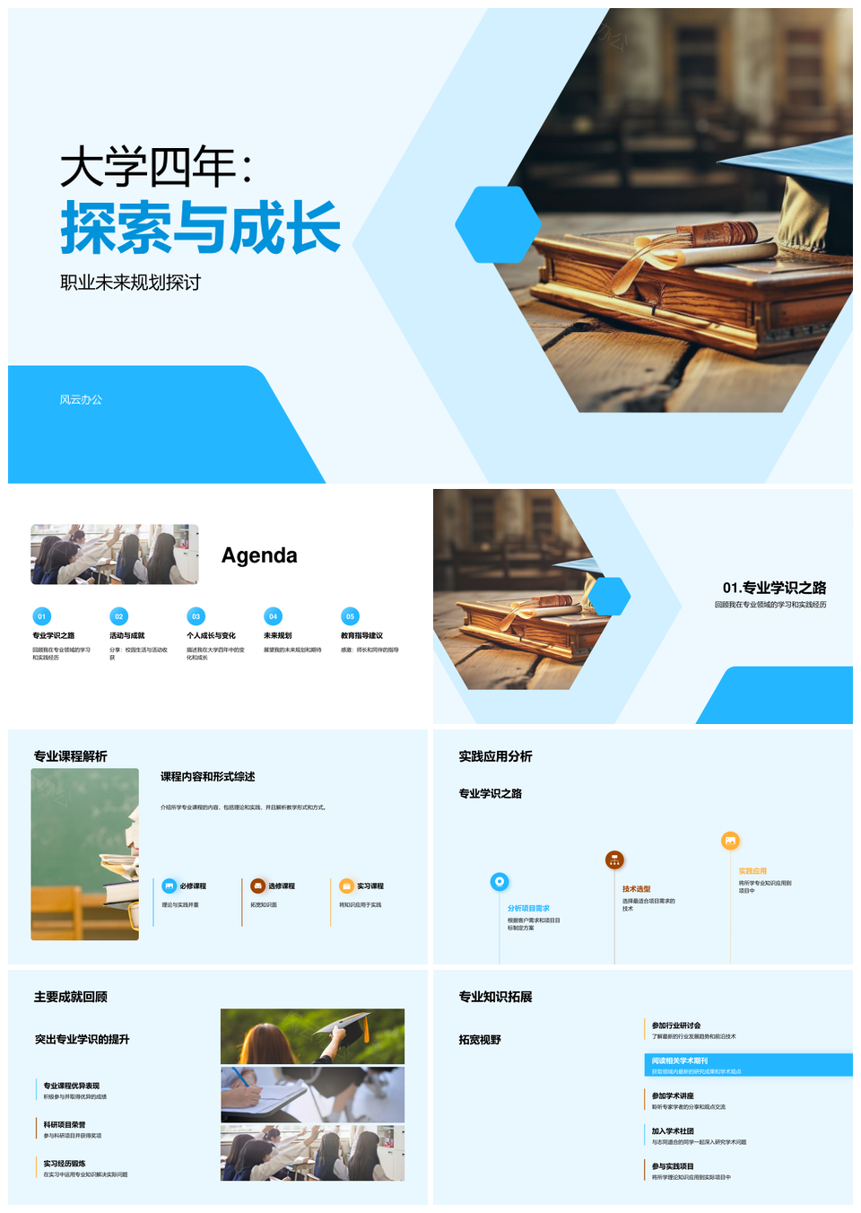 风云办公提供的大学四年探索成长启航未来规划PPT模板,下载格式为pptx,一共33页,作品中文字及图均可以修改和编辑,图片更改请在作品中右键图片并更换,文字修改请直接点击文字进行修改。