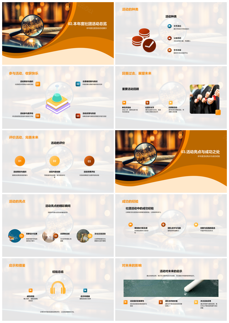 这是一张社团年鉴历程活动经验总结PPT模板,包含社团、年鉴、历程、活动、经验、总结等主题内容,也可用作社团年鉴历程活动经验总结、社团年鉴历程活动、年鉴历程活动经验总结、历程活动经验总结、社团年鉴历程活动经验、社团年鉴活动经验总结、社团历程活动经验总结、社团年鉴历程经验、年鉴历程活动经验、历程活动经验、社团活动经验总结、社团年鉴活动、年鉴历程活动、活动经验总结、社团年鉴经验等PPT场景使用。