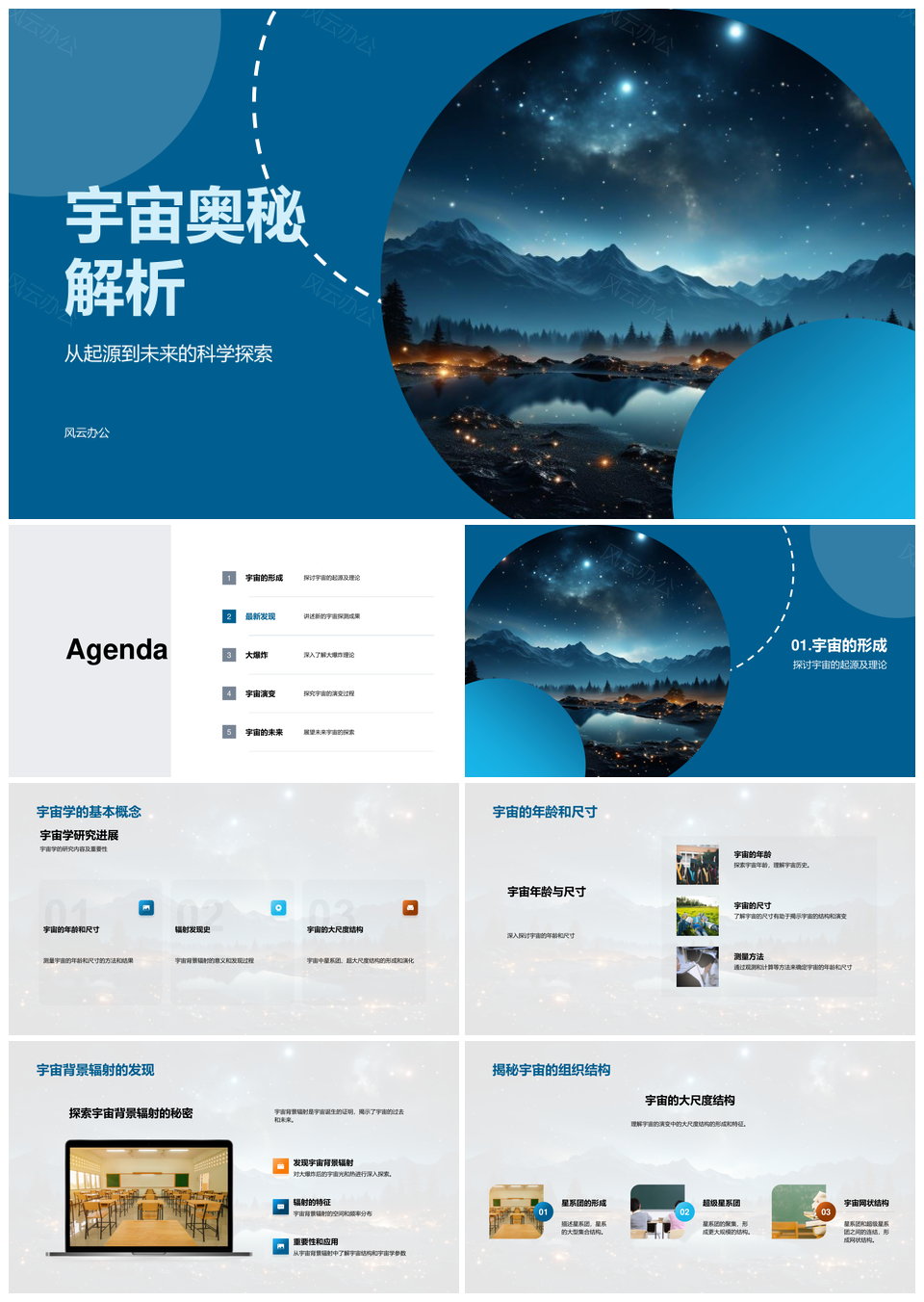 风云办公提供的宇宙形成大尺度结构与星系奥秘解析PPT模板,下载格式为pptx,一共29页,作品中文字及图均可以修改和编辑,图片更改请在作品中右键图片并更换,文字修改请直接点击文字进行修改。