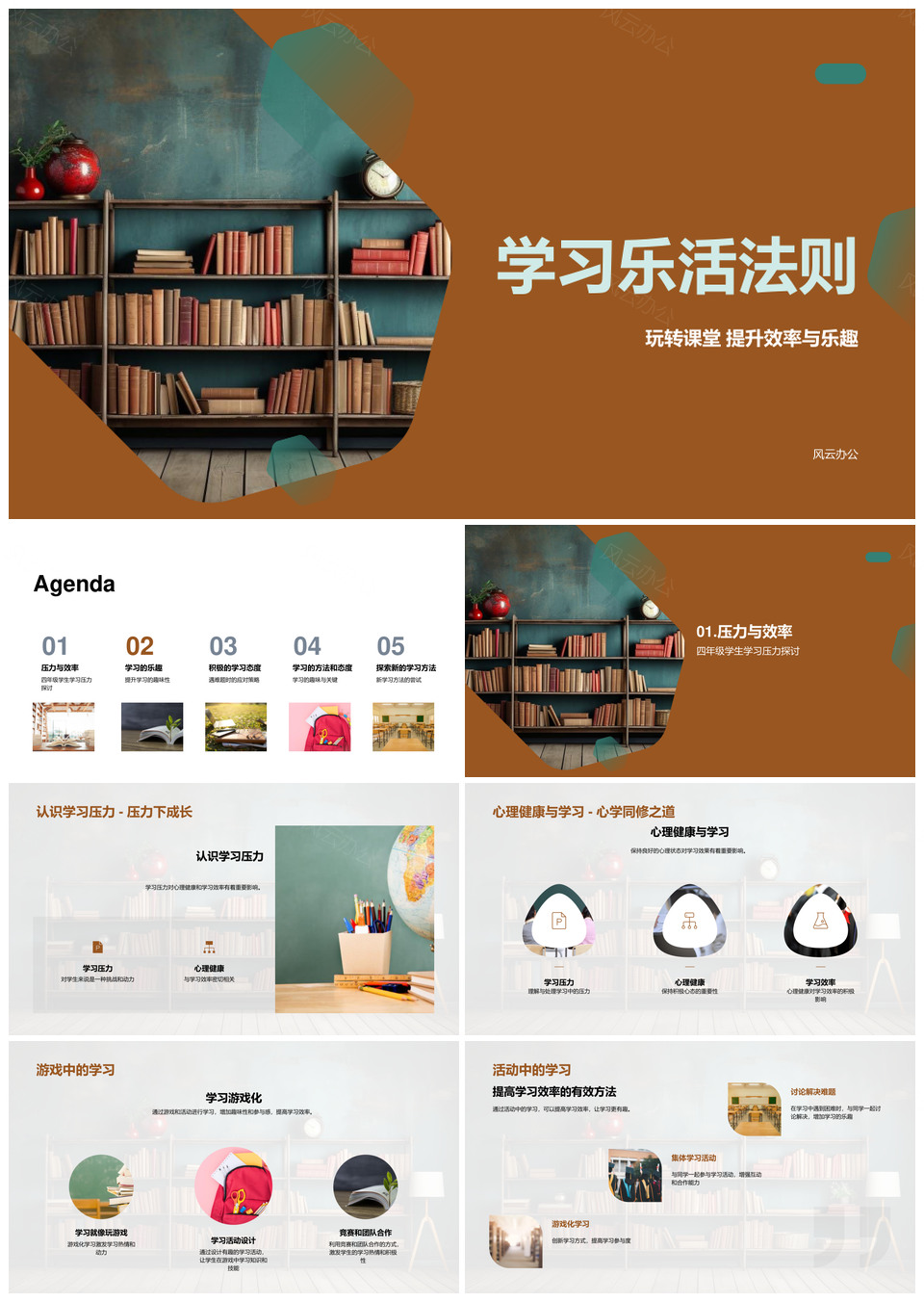 风云办公提供的四年级乐活学习游戏化解压提效护心理PPT模板,下载格式为pptx,一共33页,作品中文字及图均可以修改和编辑,图片更改请在作品中右键图片并更换,文字修改请直接点击文字进行修改。